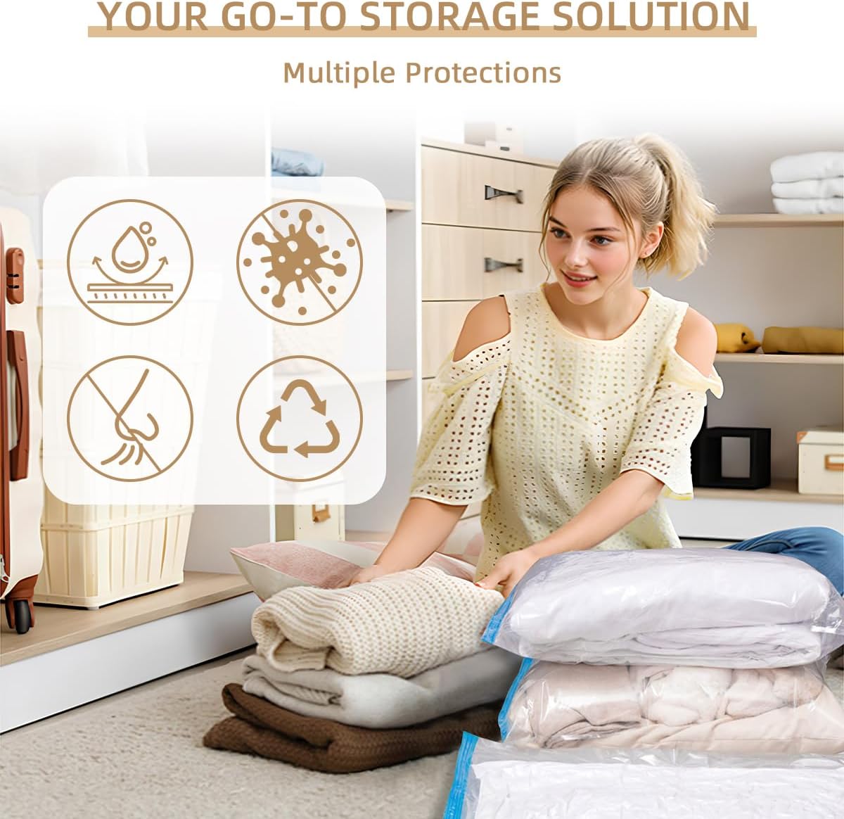 - 【Perfect All-in-One Combo for Any Trip】: Don't settle for single-size bags. Our comprehensive space saver vacuum storage bags combo pack is the ultimate packing solution. It includes a powerful, compact pump and a variety of bags to handle everything from T-shirts to jackets, making it the ideal travel vacuum bag for luggage. It’s the perfect companion for your next cruise, vacation, or business trip.