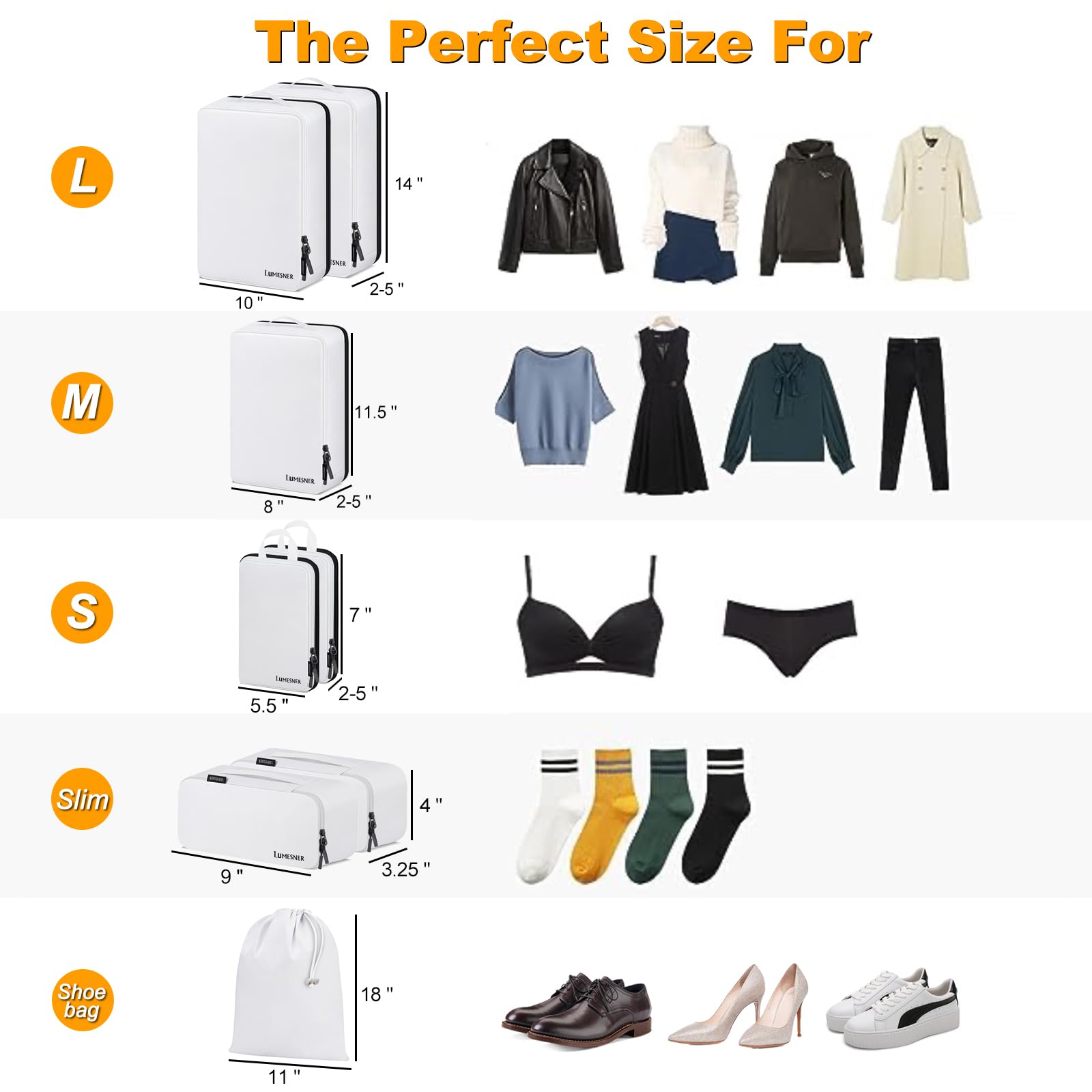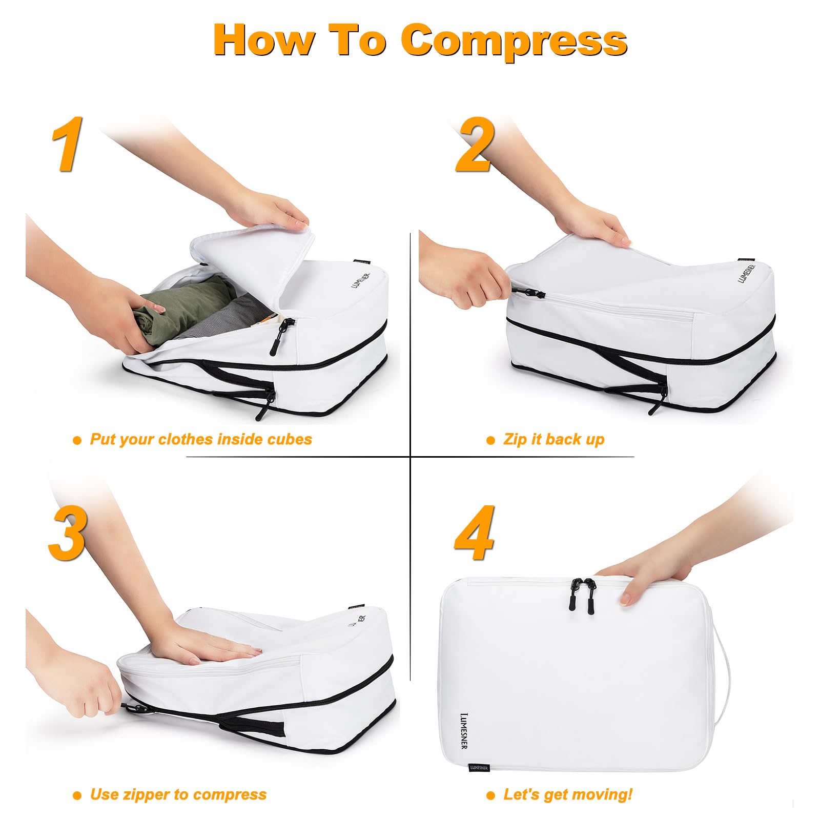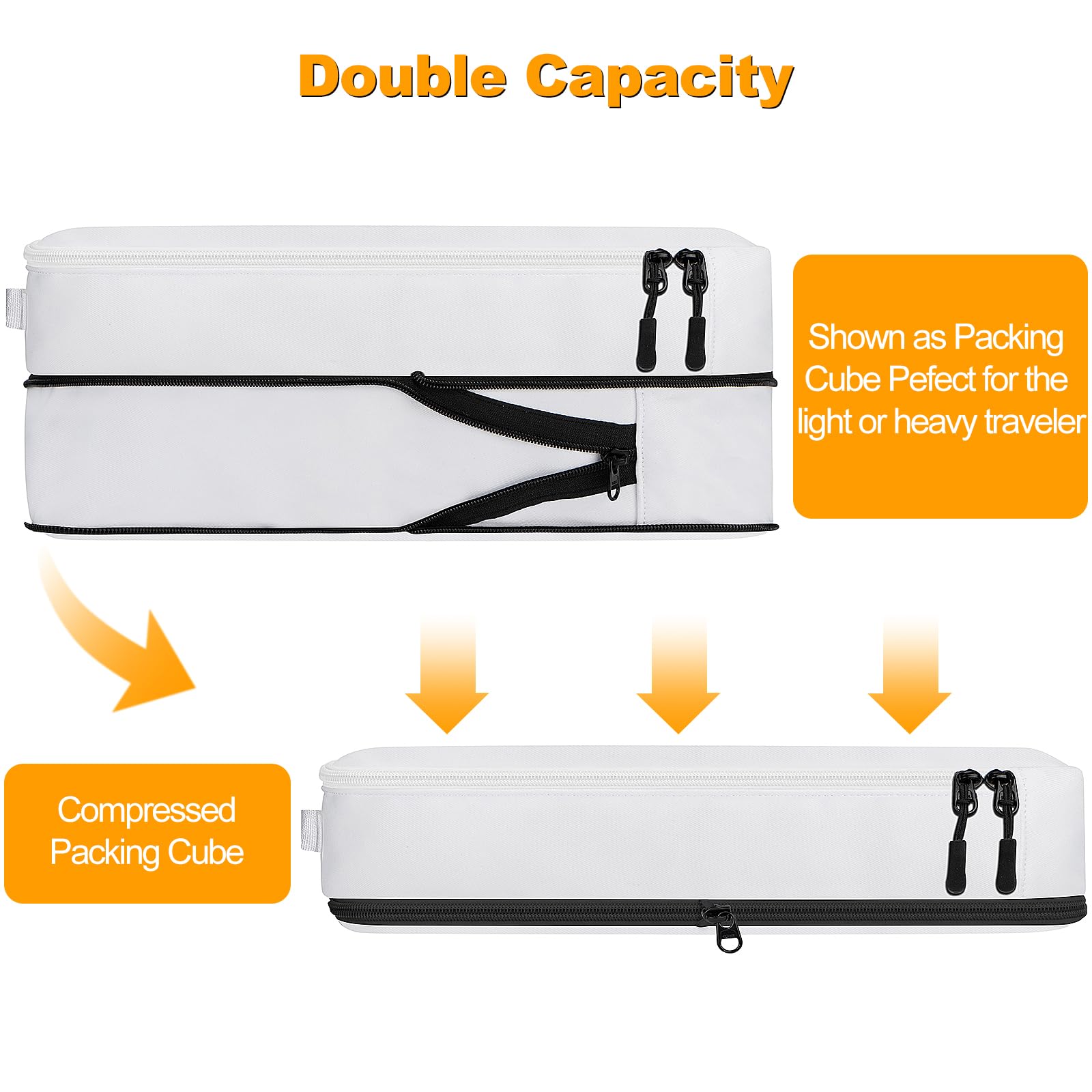 - đŚAdvanced Compression Technology â Saves 50% SpaceďźDesigned with double-layer zippers, these packing cubes compress clothes efficiently, reducing volume by up to 50%. Easily pack bulky items like jackets, sweaters, or workout gear while keeping them neatly organized. Perfect for minimalist travelers, backpackers, and business professionals who need extra space!