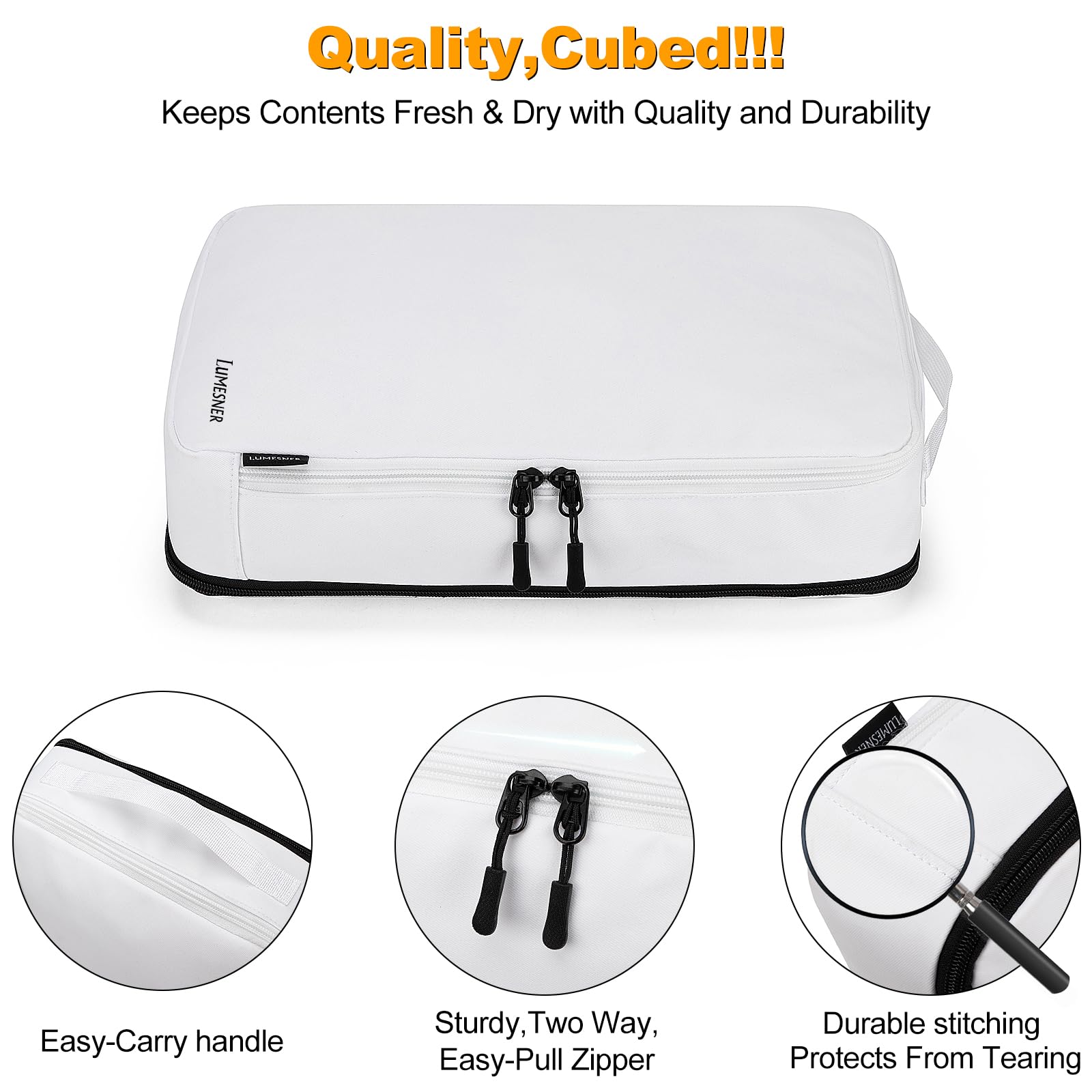 - âď¸Enhanced Durability â Heavy-Duty Zippers & Reinforced HandlesďźMade with high-density, tear-resistant fabric, these packing cubes feature premium dual zippers for smooth and reliable use. The Compression Packing cubes include reinforced handles, making them easy to carry separately or pack into suitcases, carry-ons, duffels, and backpacks!