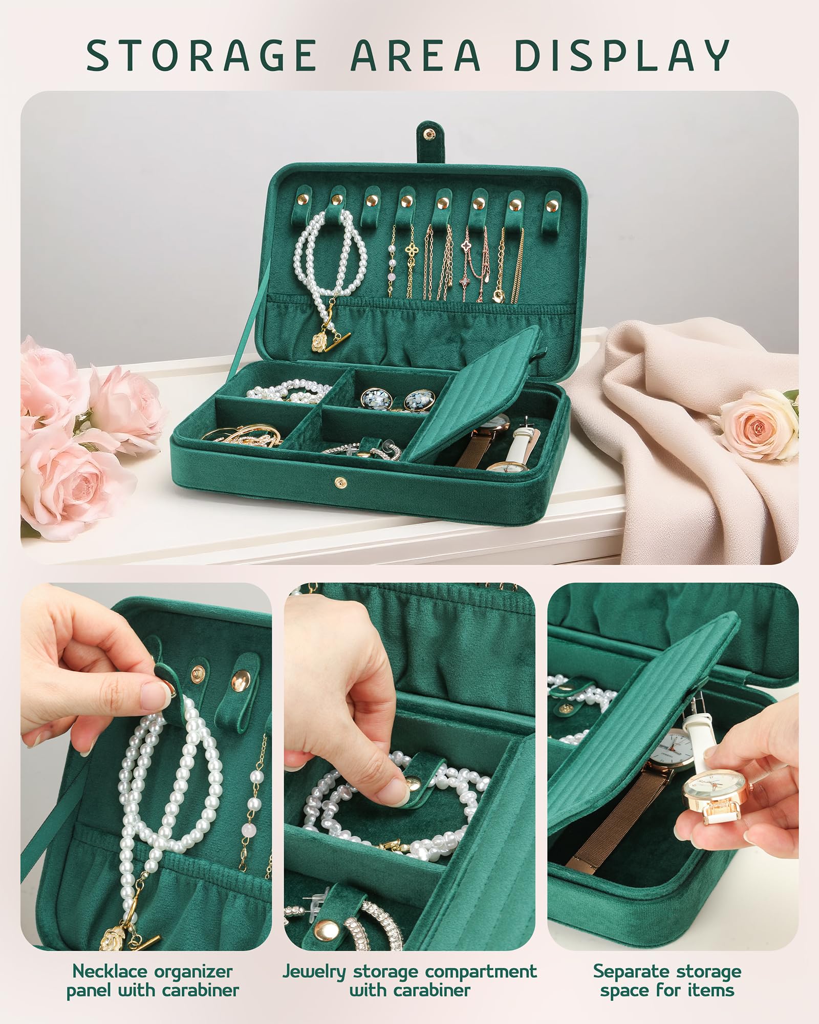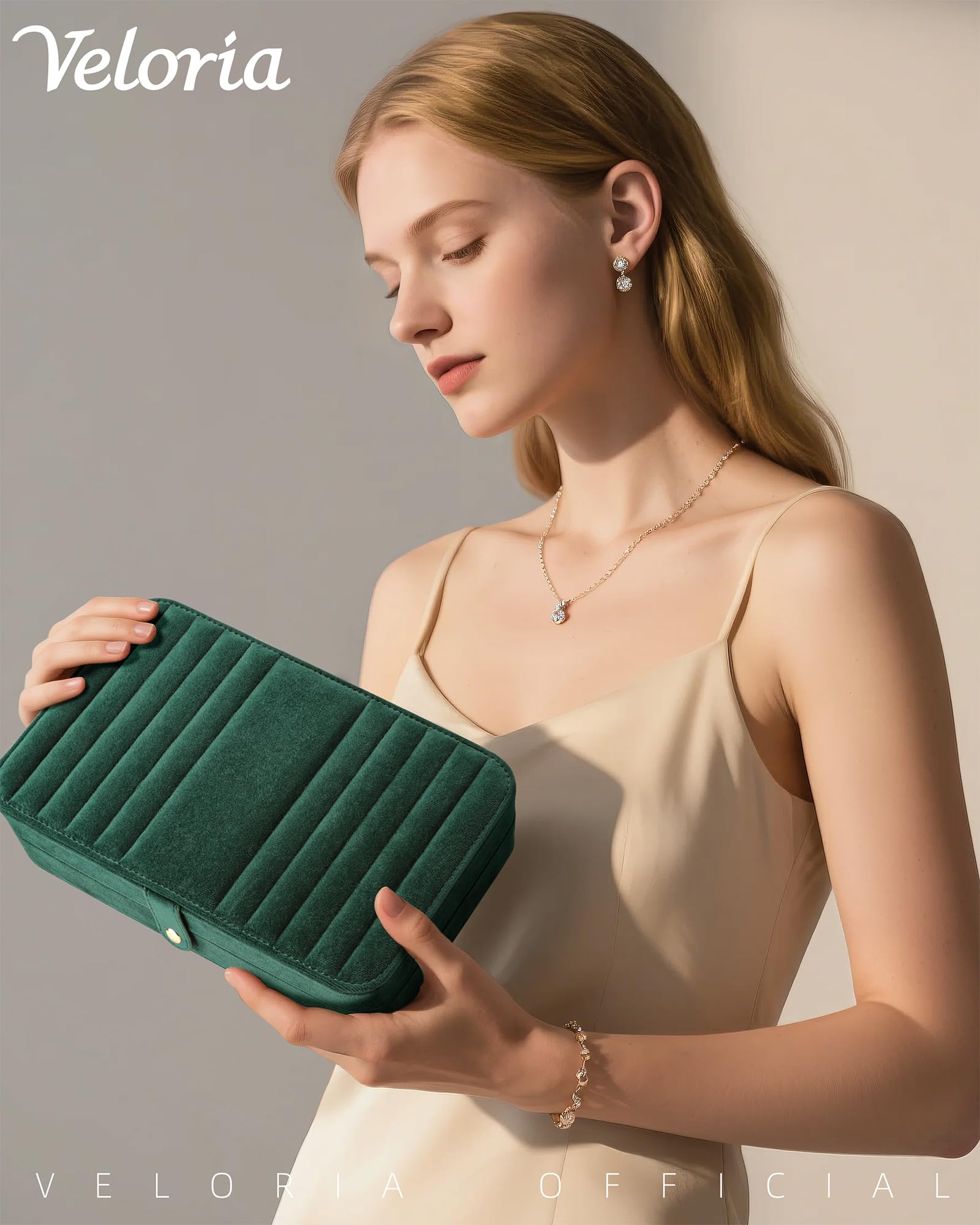 VELORIA Jewelry Box, Premium Velvet Travel Jewelry Organizers & Storage, Dust-Proof, Scratch-Resistant Jewelry Box for Necklace Bracelet Bangle, Portable Luxury Gift for Women & Girls (Emerald green)