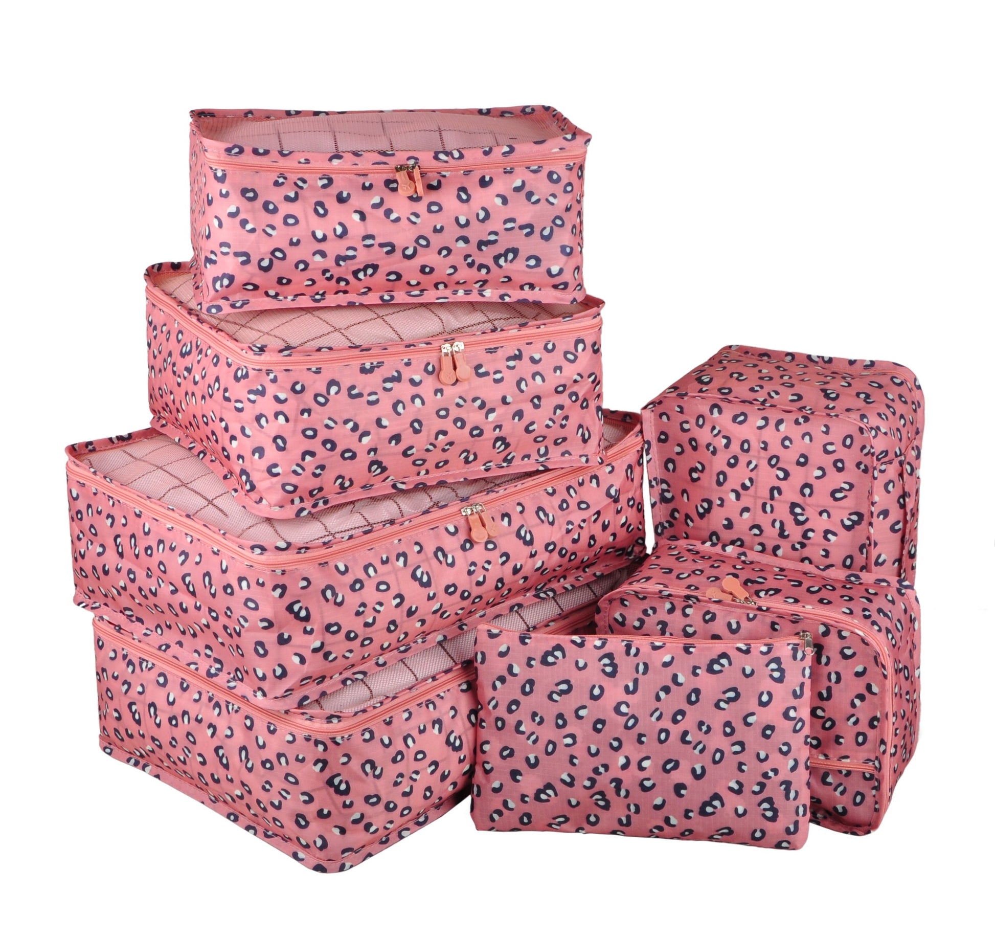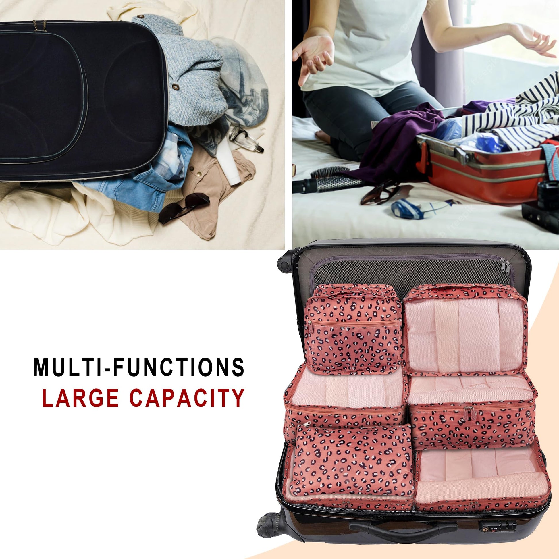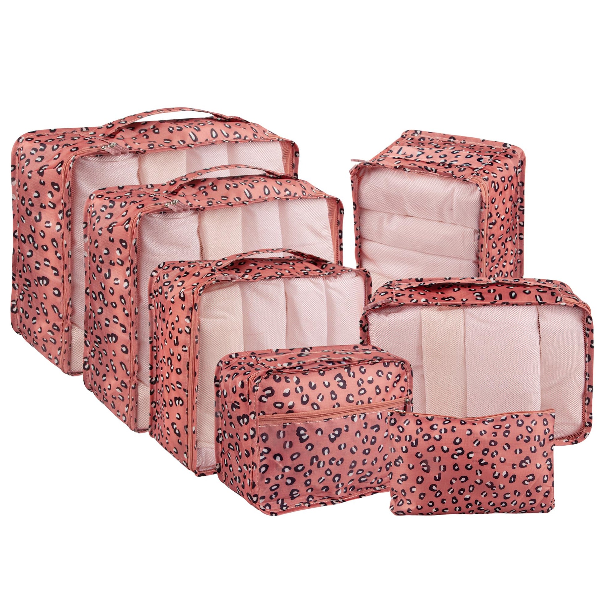 Vercord 7 Set Travel Packing Organizers Cubes Luggage Suitcase Organizer Bags Clothes Underwear Cube Shoe Pouch Pack Pink Leopard