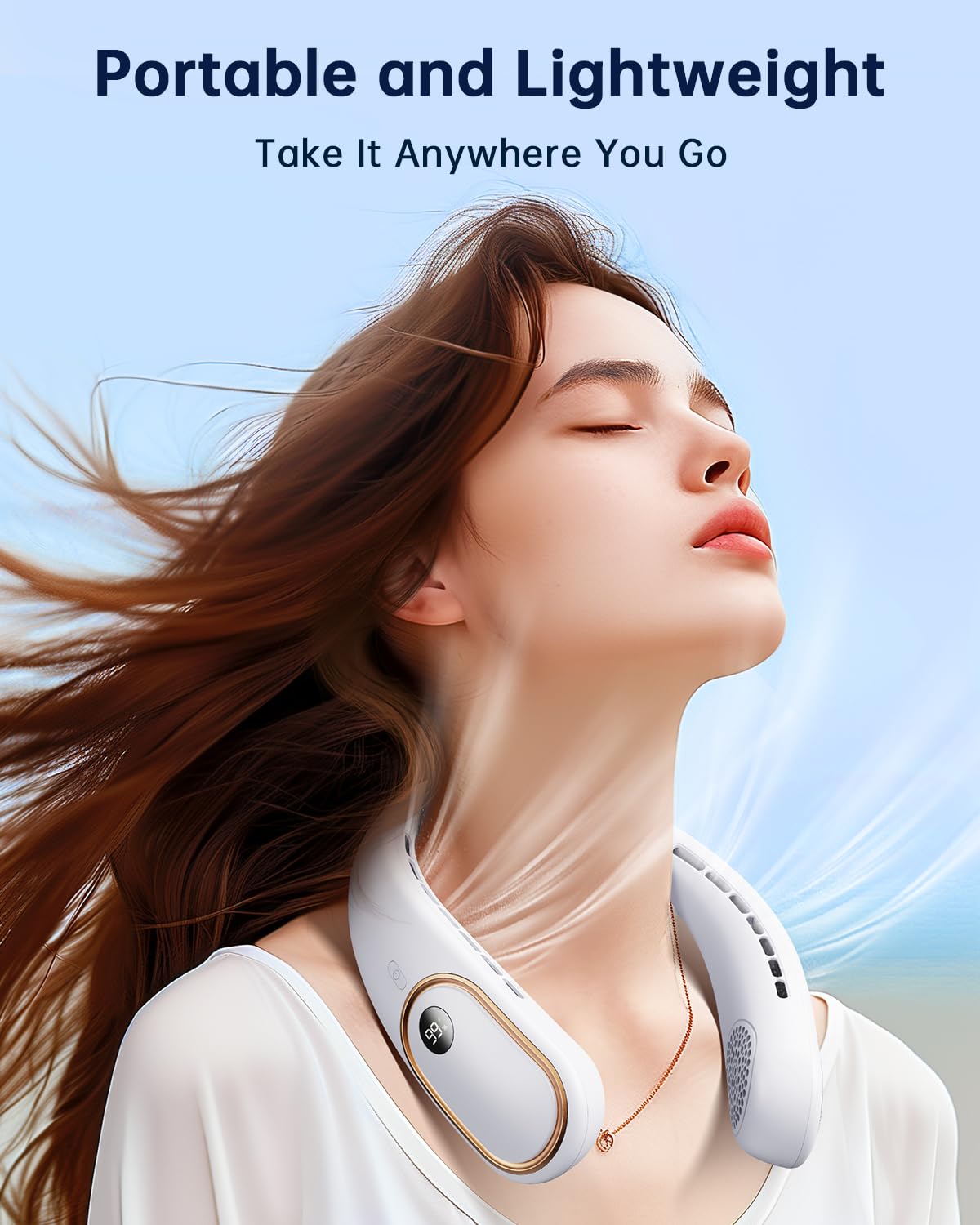 - Enhanced airflow & Safe : The upgraded motor of the neck fan delivers 75% stronger airflow, featuring a bladeless design for safe use. No worries about hair clipping. Perfect as a portable neck fan for both kids and women