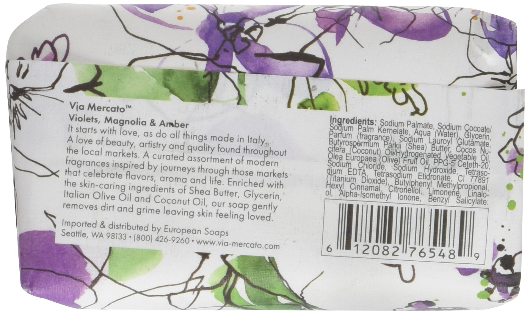 Via Mercato Italian Soap Bar (200 g), No. 4 - Violets, Magnolia & Amber