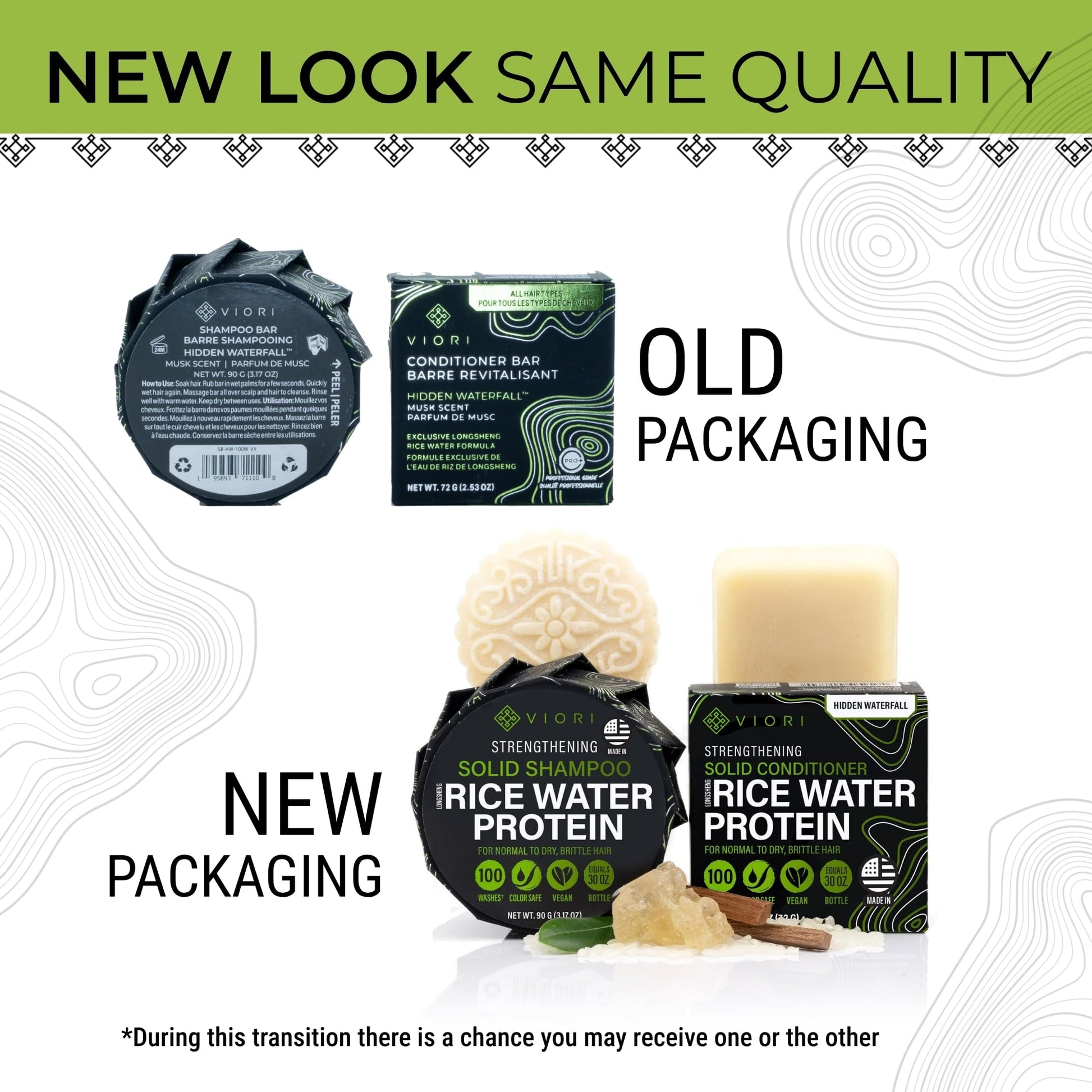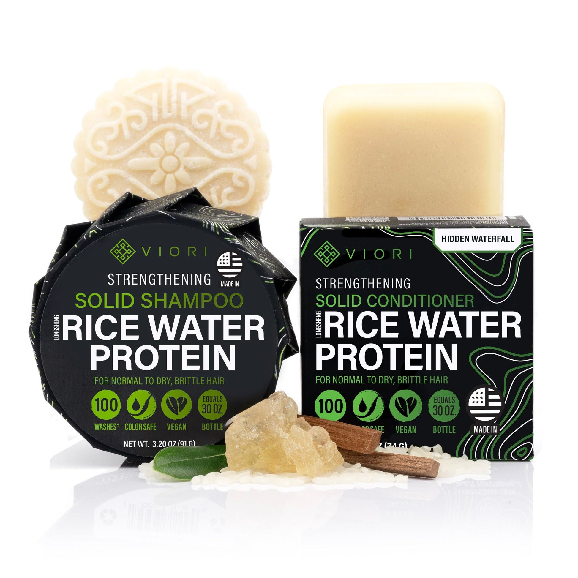 Viori Hidden Waterfall Shampoo and Conditioner Bar Set Made with Rice Water - Handcrafted Sulfate Free Shampoo and Conditioner