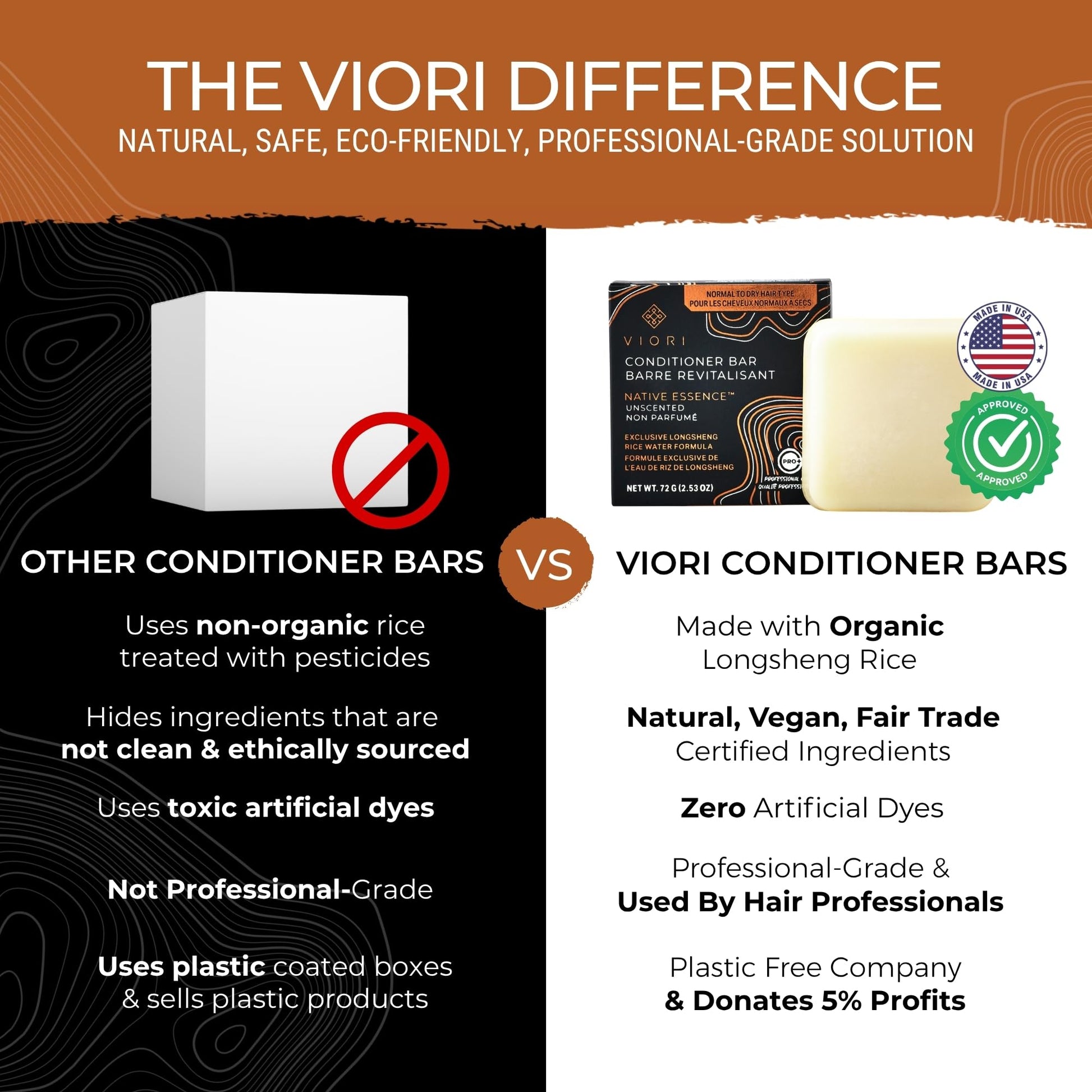 Viori Native Essence Conditioner Bar Made with Rice Water - Handcrafted All Natural Organic Conditioner