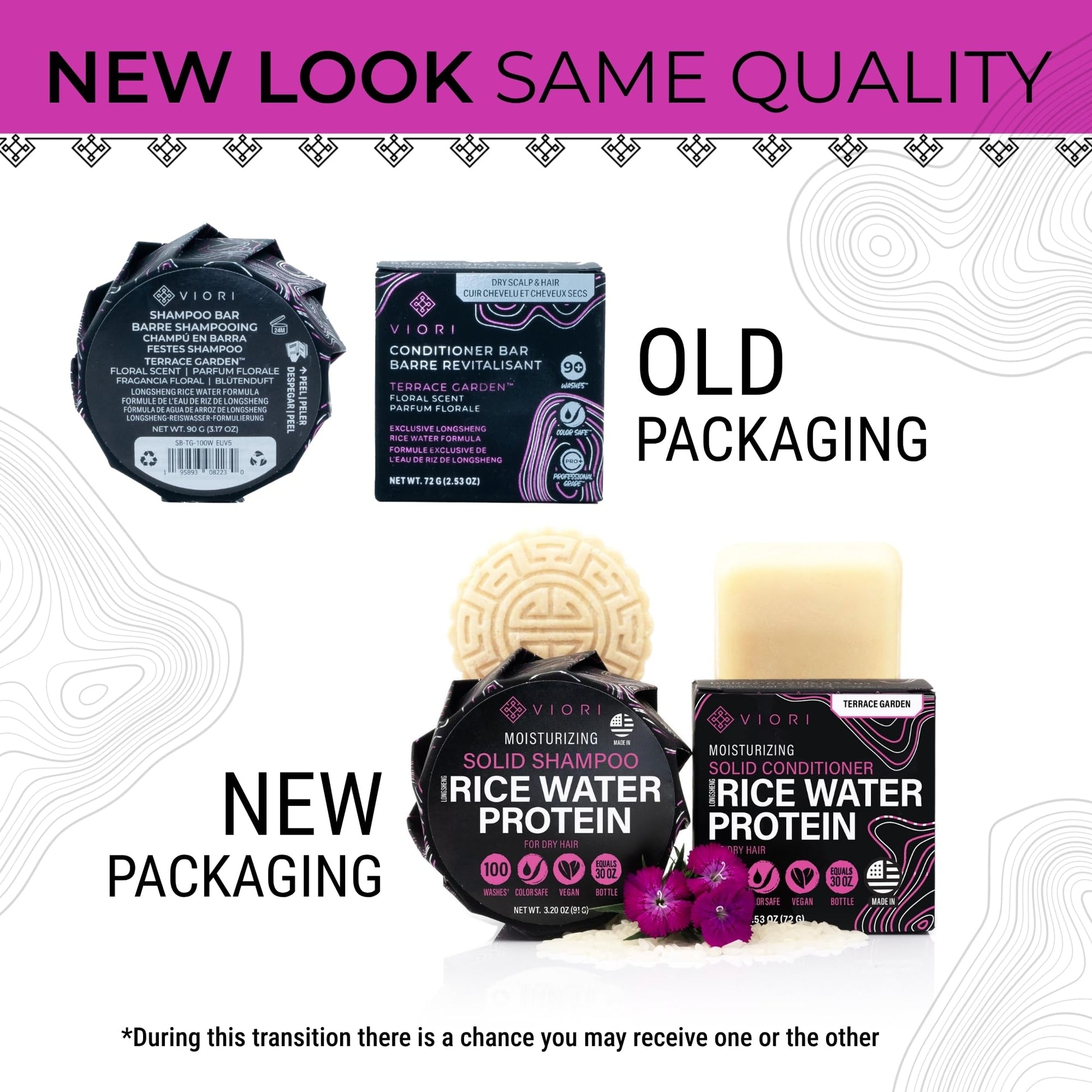 Details: Viori Terrace Garden Shampoo and Conditioner Bar Set and Bamboo Holder- Made with Rice Water for Hair Growth - Handcrafted Sulfate Free Shampoo and Conditioner