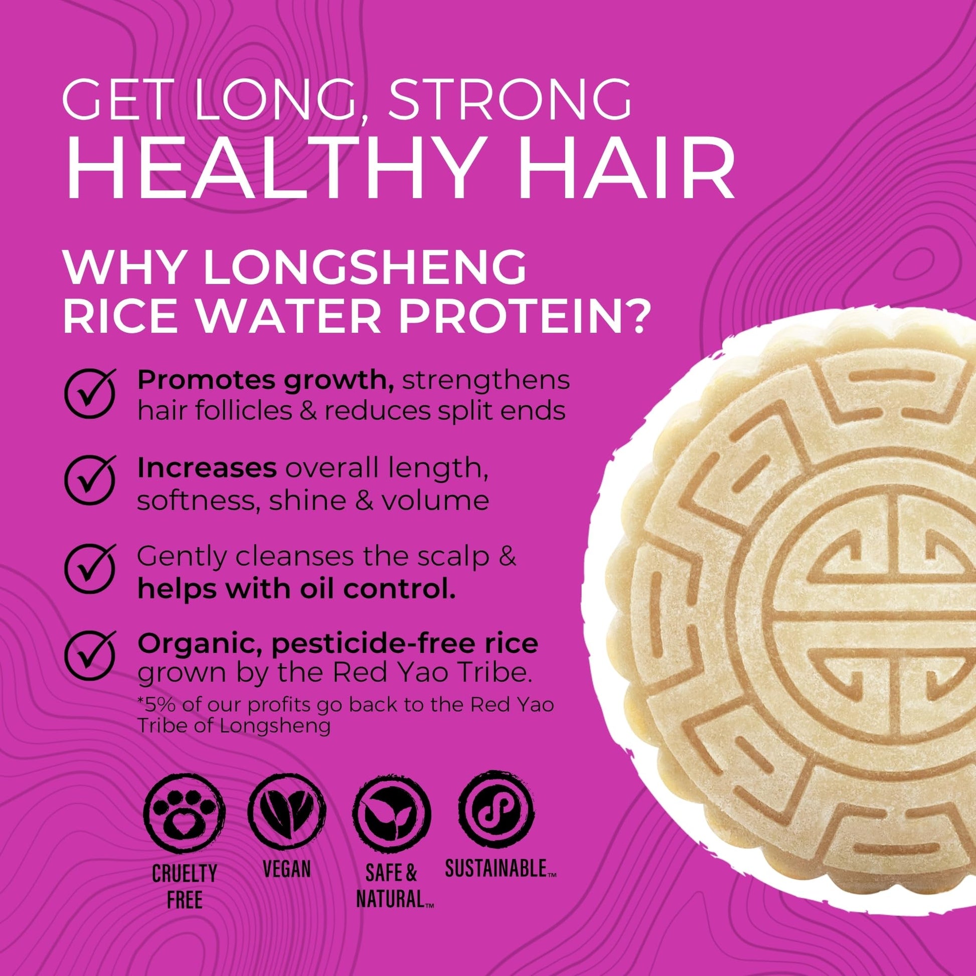 - Natural Benefits of Rice Water Shampoo: Looking for a natural hair growth shampoo for women and men? Our rice water shampoo and conditioner bars are made from nourishing ingredients like rice water, vitamins and natural oils that make incredibly effective hair growth products