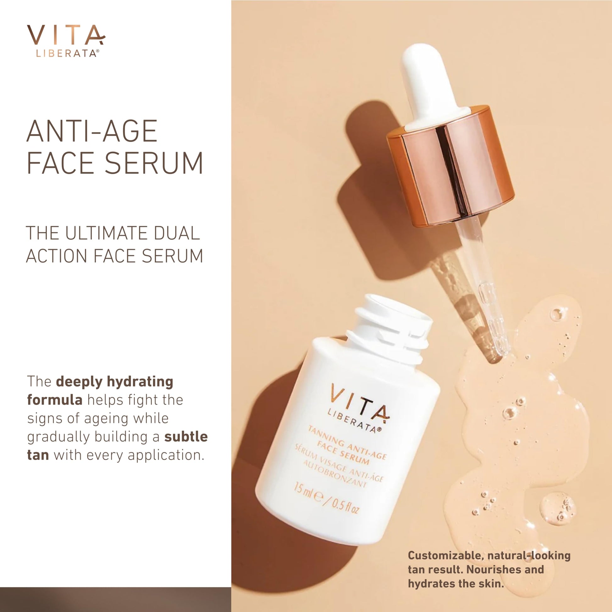 Vita Liberata Anti-Age Face Serum - Dual Action Serum, Deeply Nourishing & Hydrating, Customizable Tan, Formulated with Bakuchiol & Organic Botanicals, 30ml / 0.5 fl oz