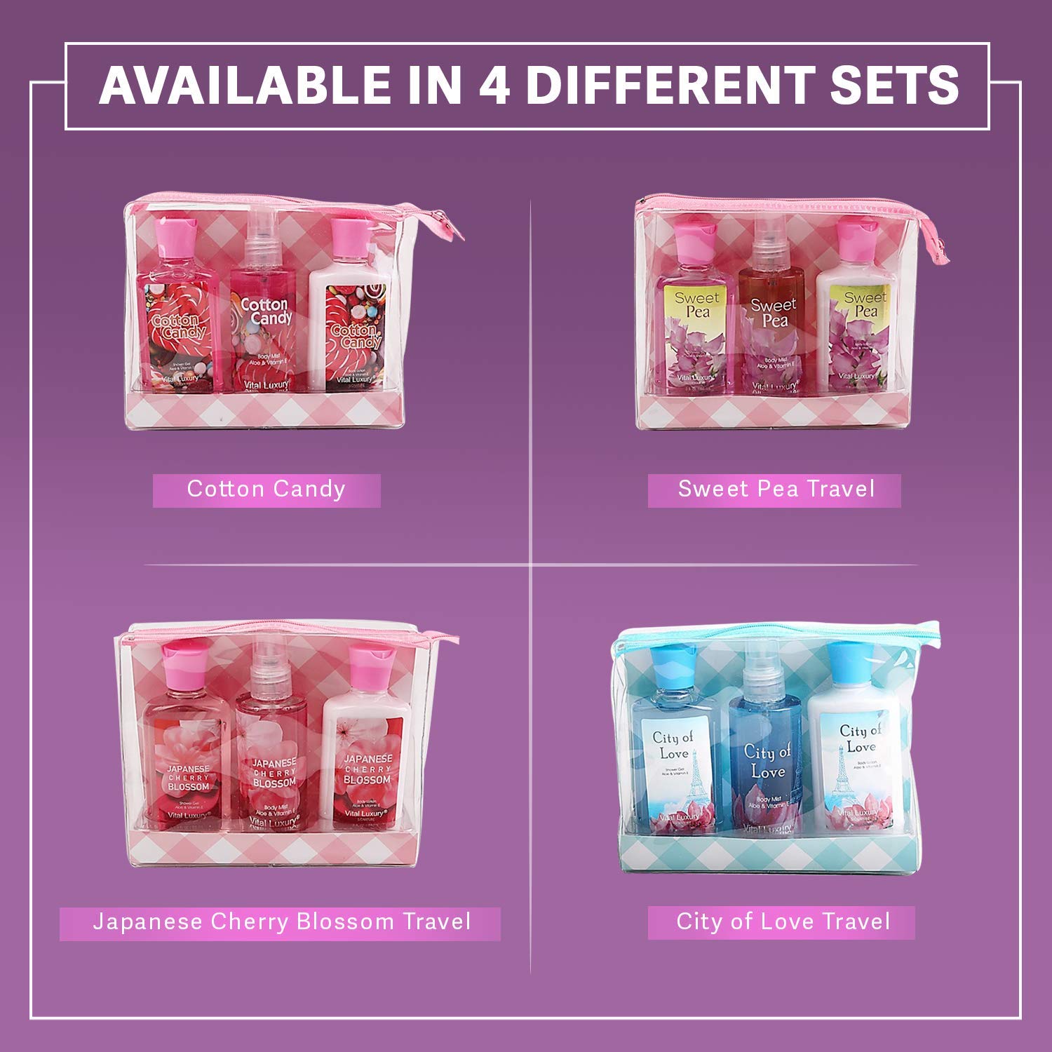 Vital Luxury Bath & Body Care Travel Set - Home Spa Set with Body Lotion, Shower Gel and Fragrance Mist, Personal Body Care Travel Set (City of Love)