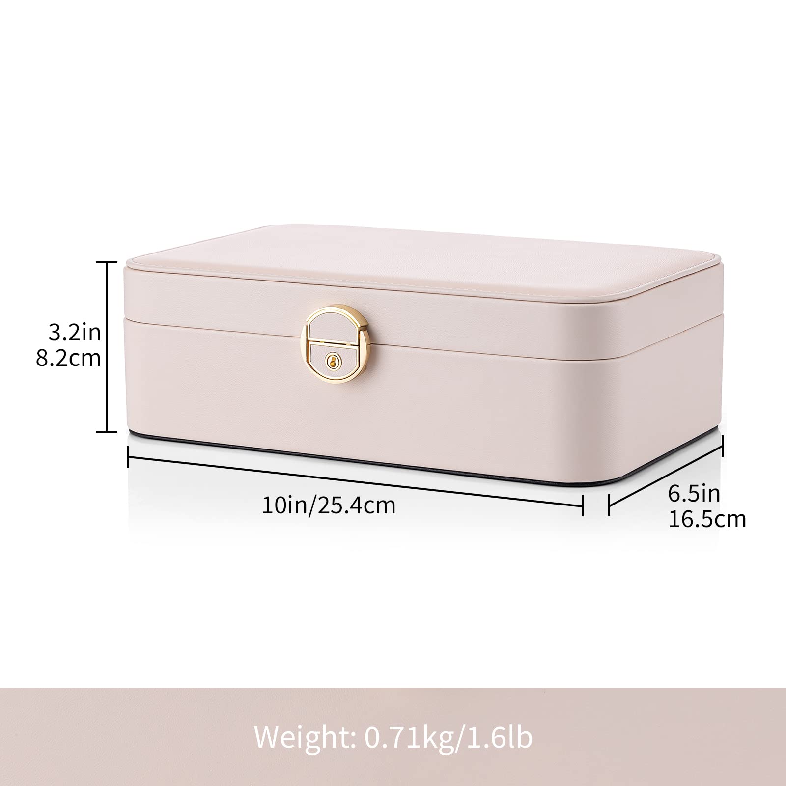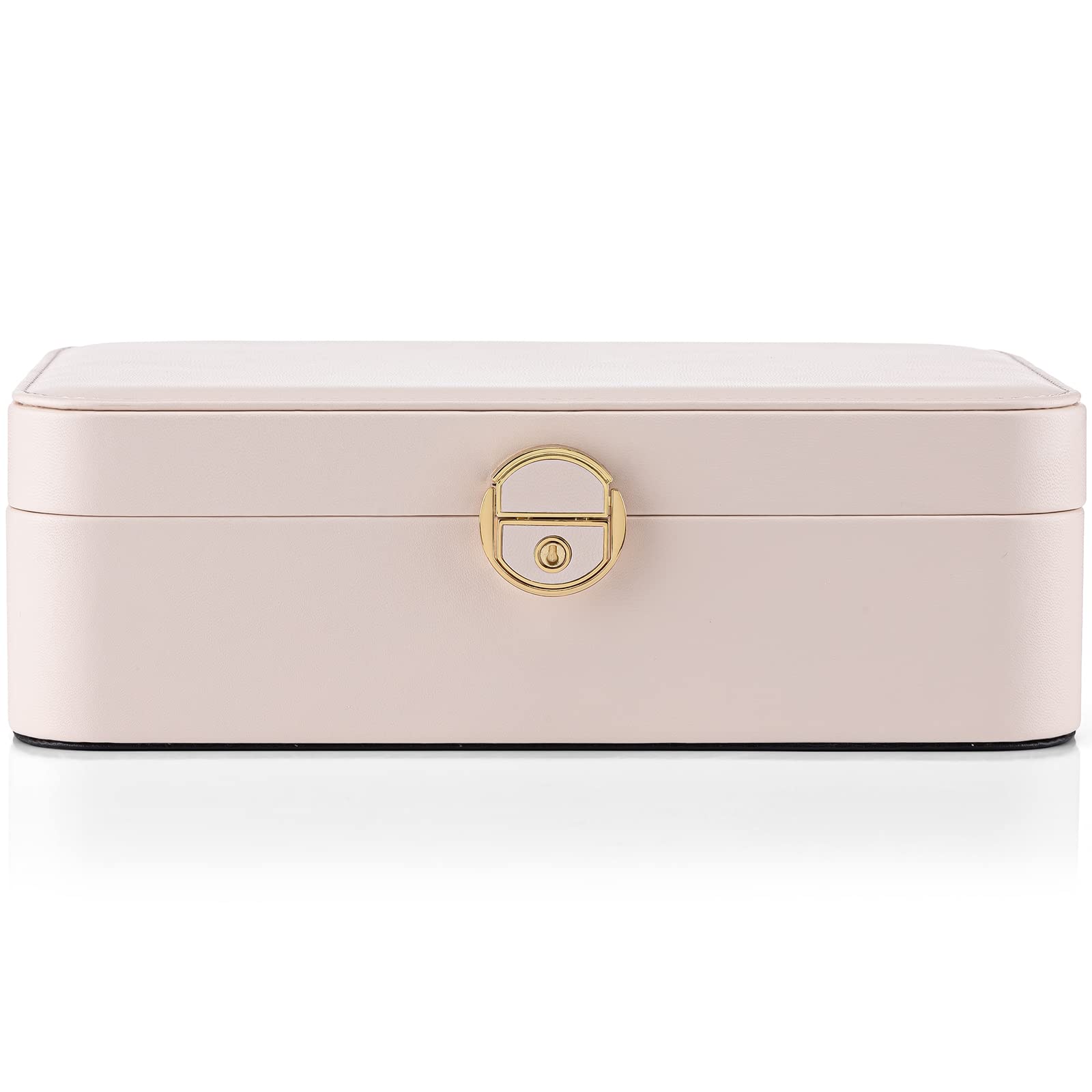 Vlando 2-Layer Jewelry Box,Valentines Day Gifts for Her Jewelry Organizer for Women Removable Jewelry Tray for Earrings Necklace,Gift Ideas,Birthday Graduation Gifts Apricot Pink