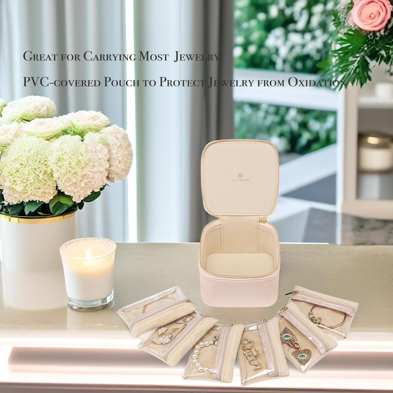 Vlando Travel Jewelry Box Organizer - 6 Small Velvet Zipped Pouches Pockets for Jewelries Necklaces Rings Earrings Sorting Storage, Rosy Mauve
