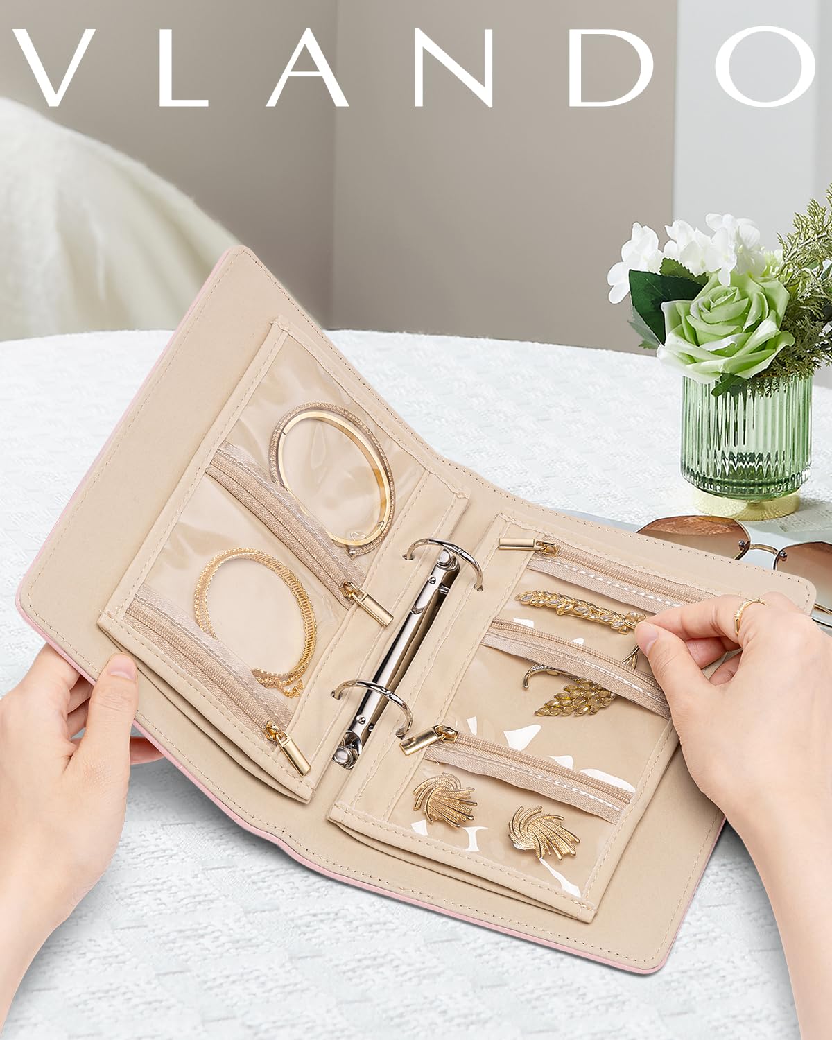 - Adjustable Ring Binder:Women's travel jewelry organizer comes with metal binder rings,you can add or remove pages flexibly as your needs. Tips: If you want to put some chunky jewelry, suggest reduce some inner pages appropriately to avoid squeezing your jewelry