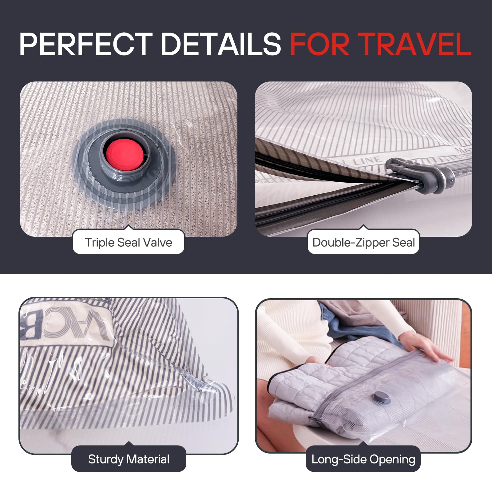 - 3 Sizes for Travel: Includes 4 Small (15.8 × 19.7 in), 4 Medium (15.8 × 23.6 in), and 4 Large (19.7 × 23.6 in) bags, designed to fit perfectly in luggage and maximize space