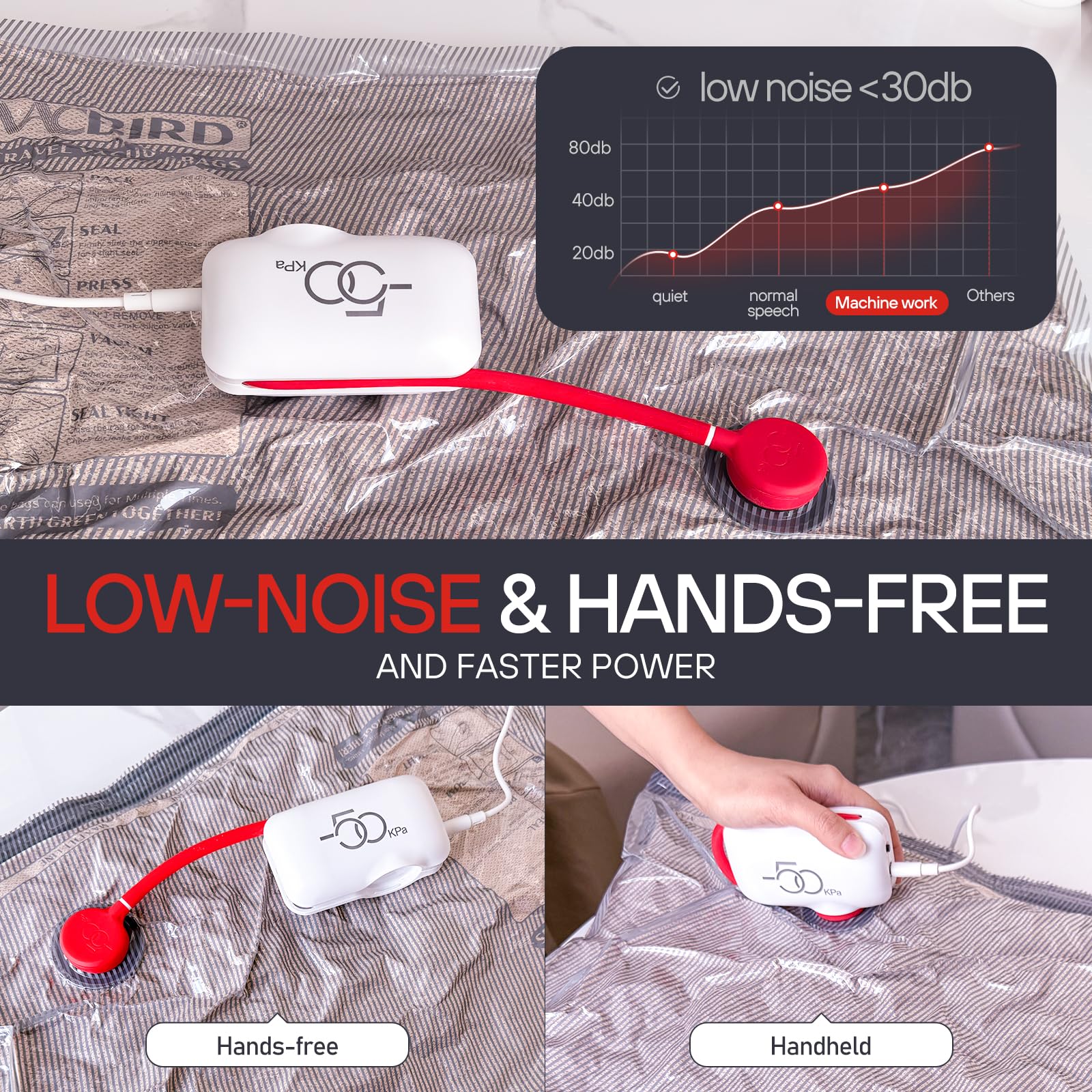- Superior Compression Technology: Features a 12V 1A electric pump with -50 kPa pressure and 12L/min airflow, saving up to 80% of luggage space