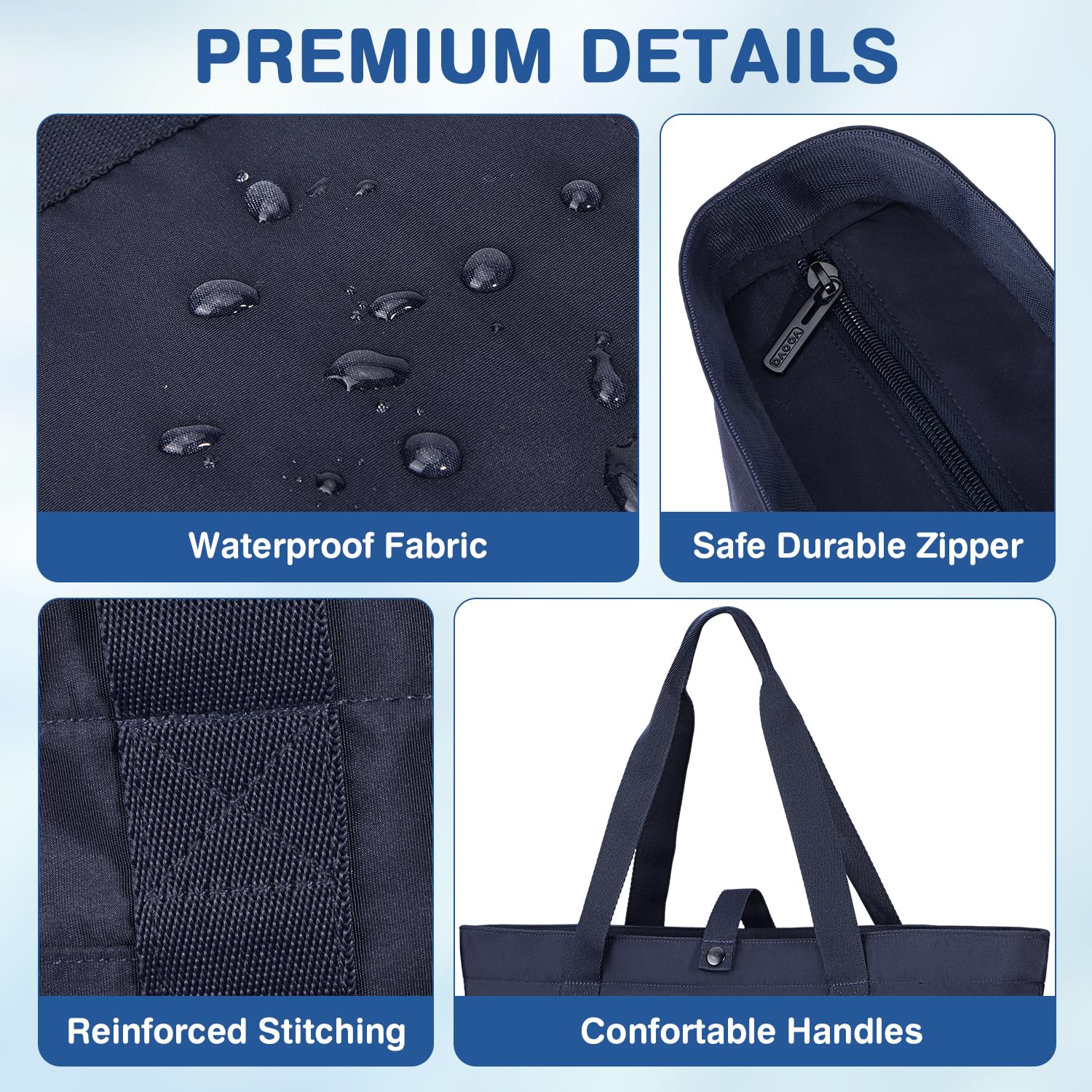 Voova Tote Bag for Women, Large Capacity Tote Bag with Zipper, Foldable Shoulder Bag Handbag for Work,Travel,Shopping,Beach, Navy Blue