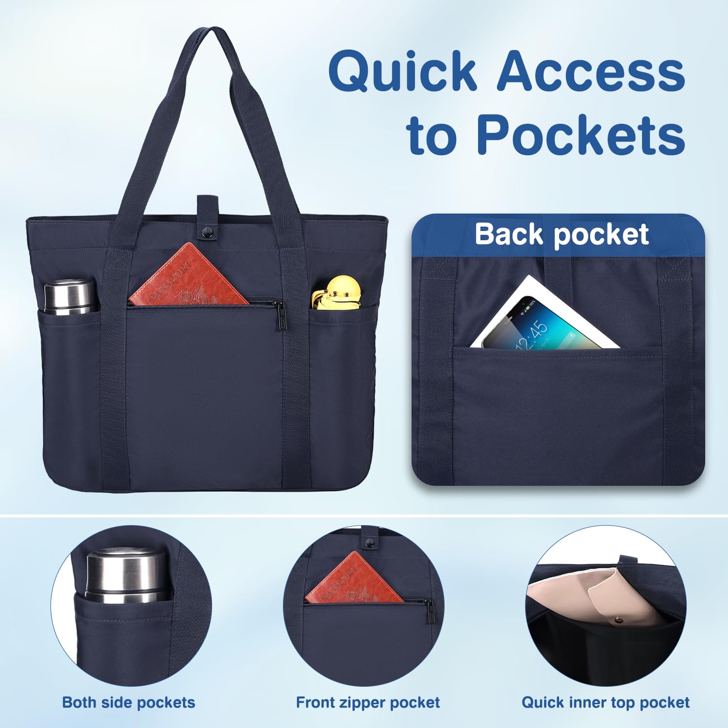 - 【Large Capacity & Multi-pockets】The work tote bag contains 6 separate pockets : 1 big main compartment can easily hold A4 folder, clothes and other daily necessities. 1 front zippered pocket +2 outer handy pockets+ 1 back slide pocket+1 quick inner top pocket allow you to access the items conveniently.