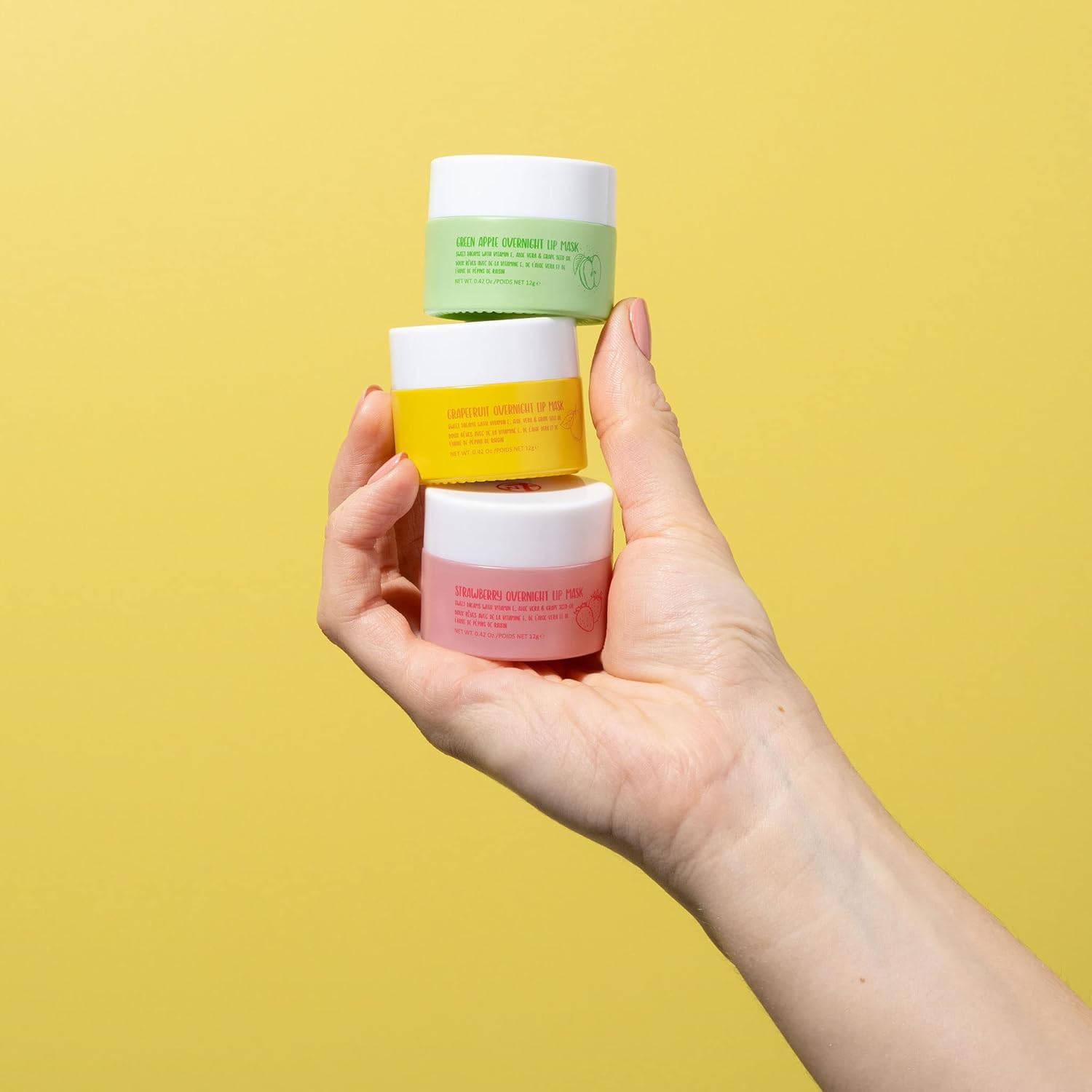 W7 Sweet Dreams Overnight Lip Mask Trio - Strawberry, Apple & Grapefruit Flavor Gift Set - Vitamin E, Aloe Vera and Grape Seed Oil - For Hydrated, Full Looking & Irresistible Lips