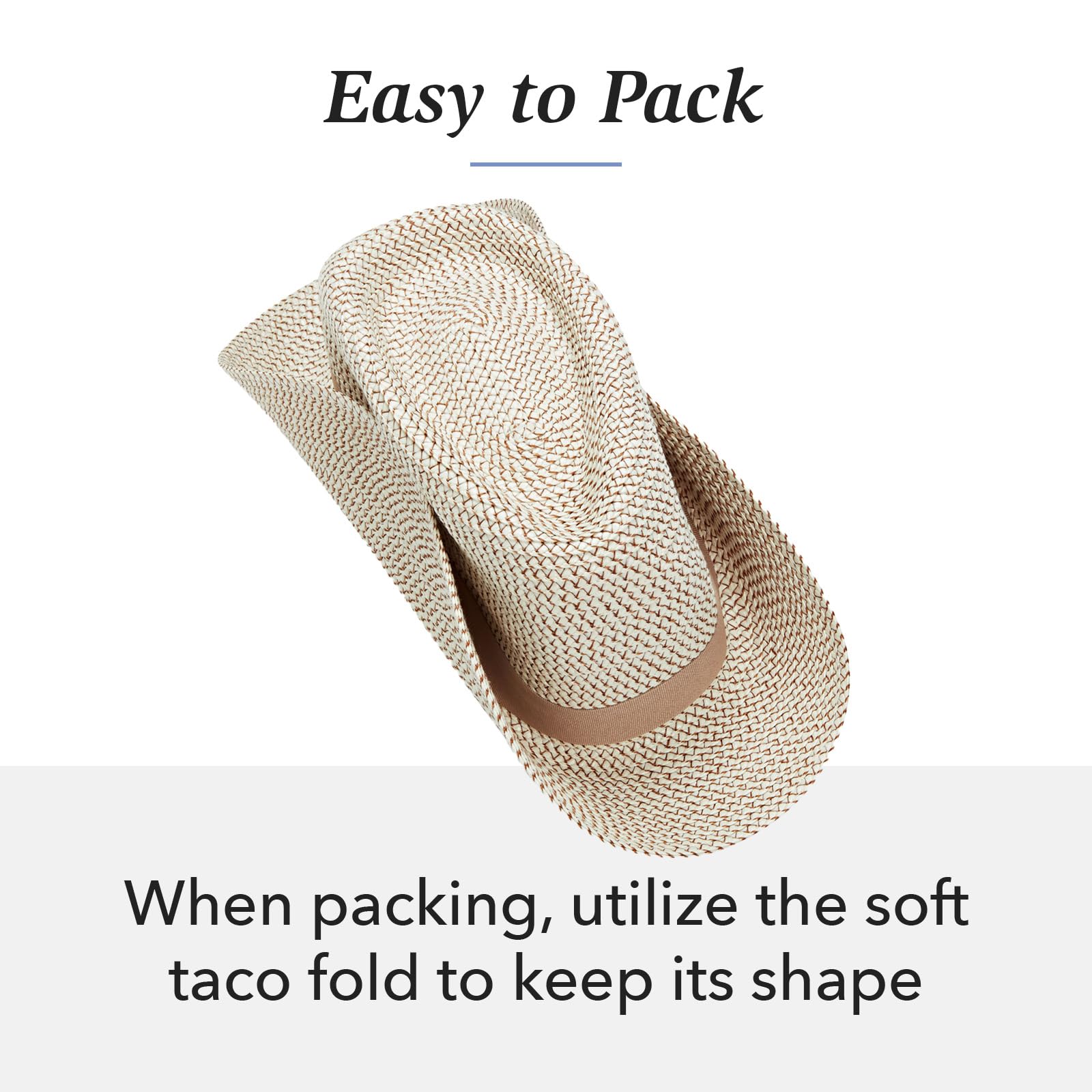 - PACKABLE AND TRAVEL-READY: The Petite Charlie Fedora is easily packable with a Soft Taco Fold, making it a convenient companion for your travels. Gently bring the sides of the hat together in a traditional taco shape, and surround it with your clothing to provide support for the brim to prevent creasing. Pack small items like socks and underwear in the crown, preserving its original shape.
