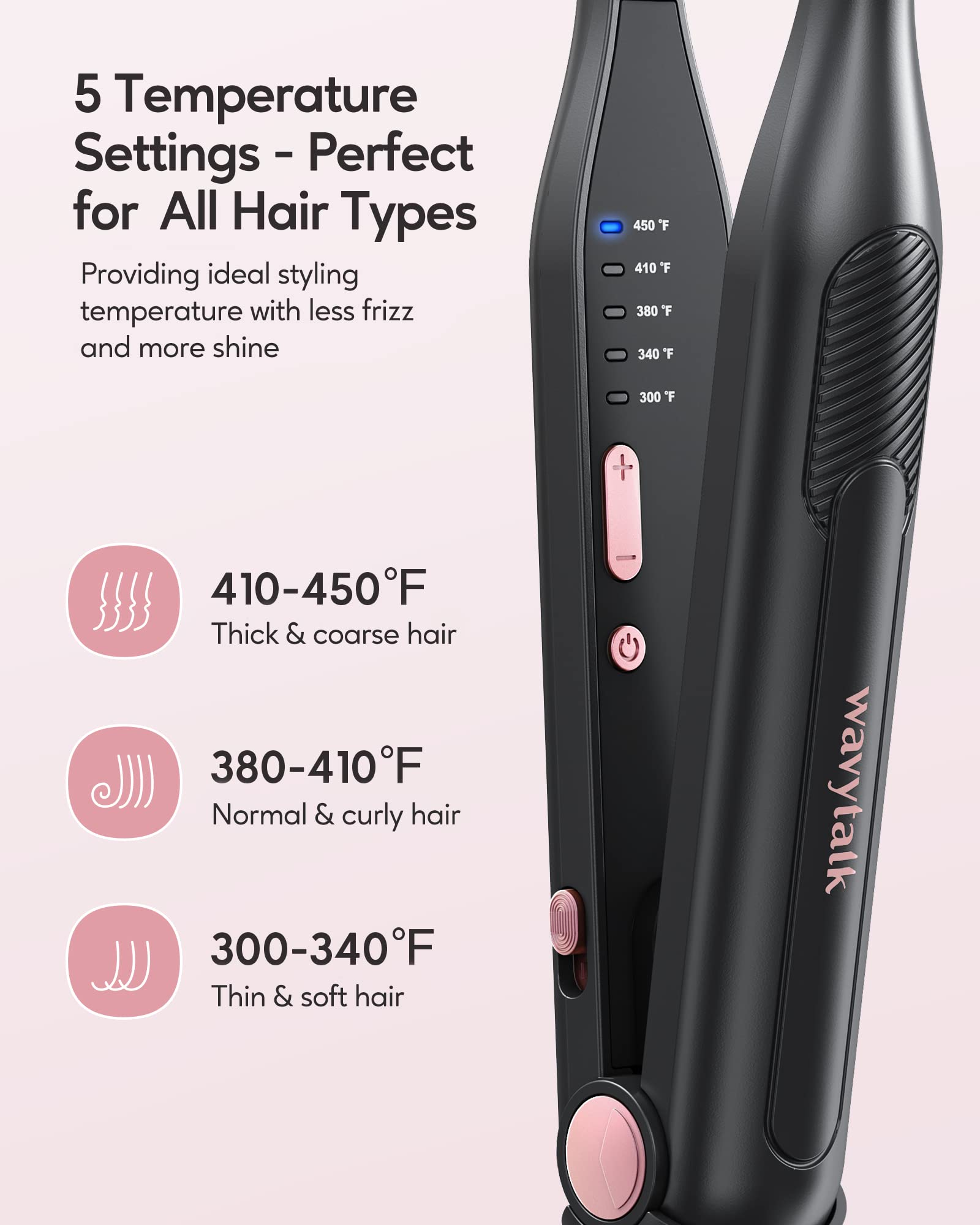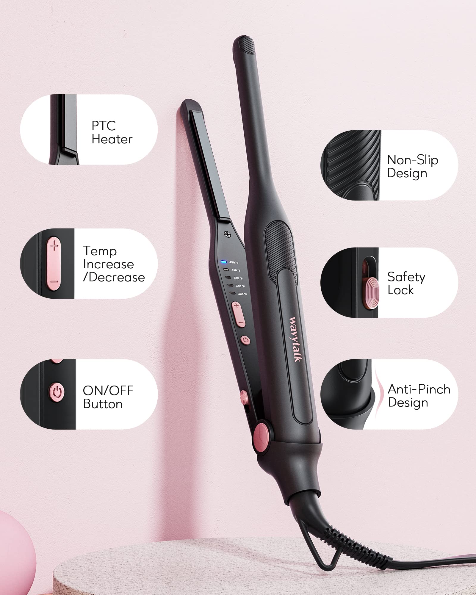 Wavytalk 3/10" Small Flat Iron, Pencil Flat Iron for Short Hair, Pixie Cut and Bangs, Curling Iron for Short Hair, Mini Hair Straightener for Edges with Anti-Pinch Design, Tiny Hair Straightener