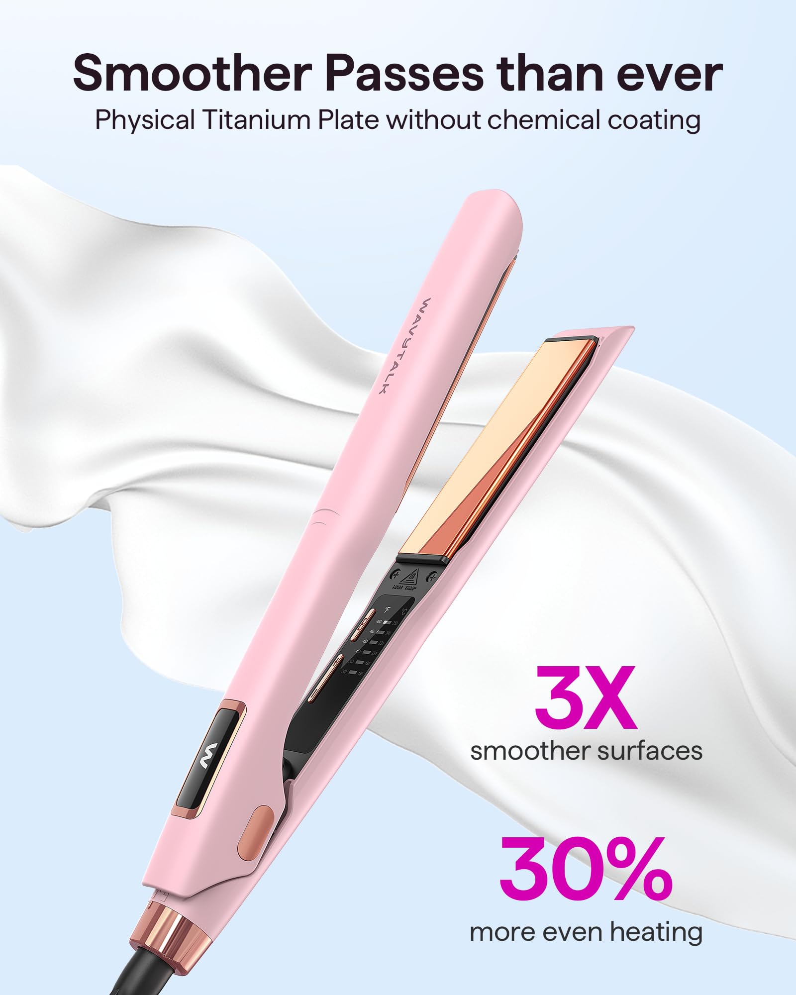 Wavytalk Professional Flat Iron Hair Straightener and Curler 2 in 1, Titanium Flat Iron for One-Pass Wonder 10S Fast Heat Up, Glide & Shine Straightener with Dual Voltage (1.18 Inch)