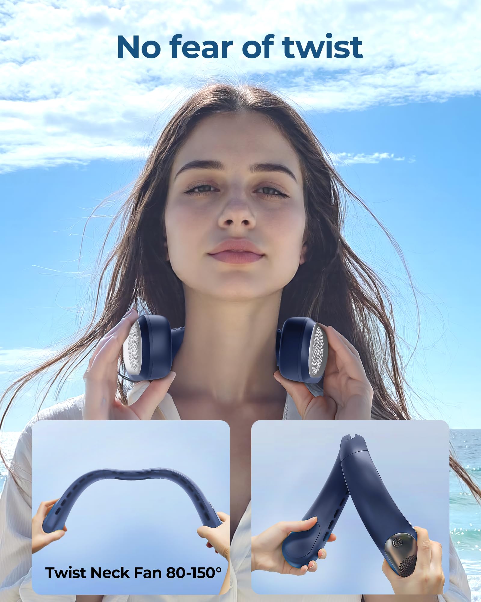 - Fast Cooling: Stay cool anytime, anywhere with our neck fan equipped with a bladeless turbine motor, providing powerful 360° airflow that Cools you down quickly on hot days. This portable neck fan is a must-have cooling device, perfect for outdoor activities or hot weather.
