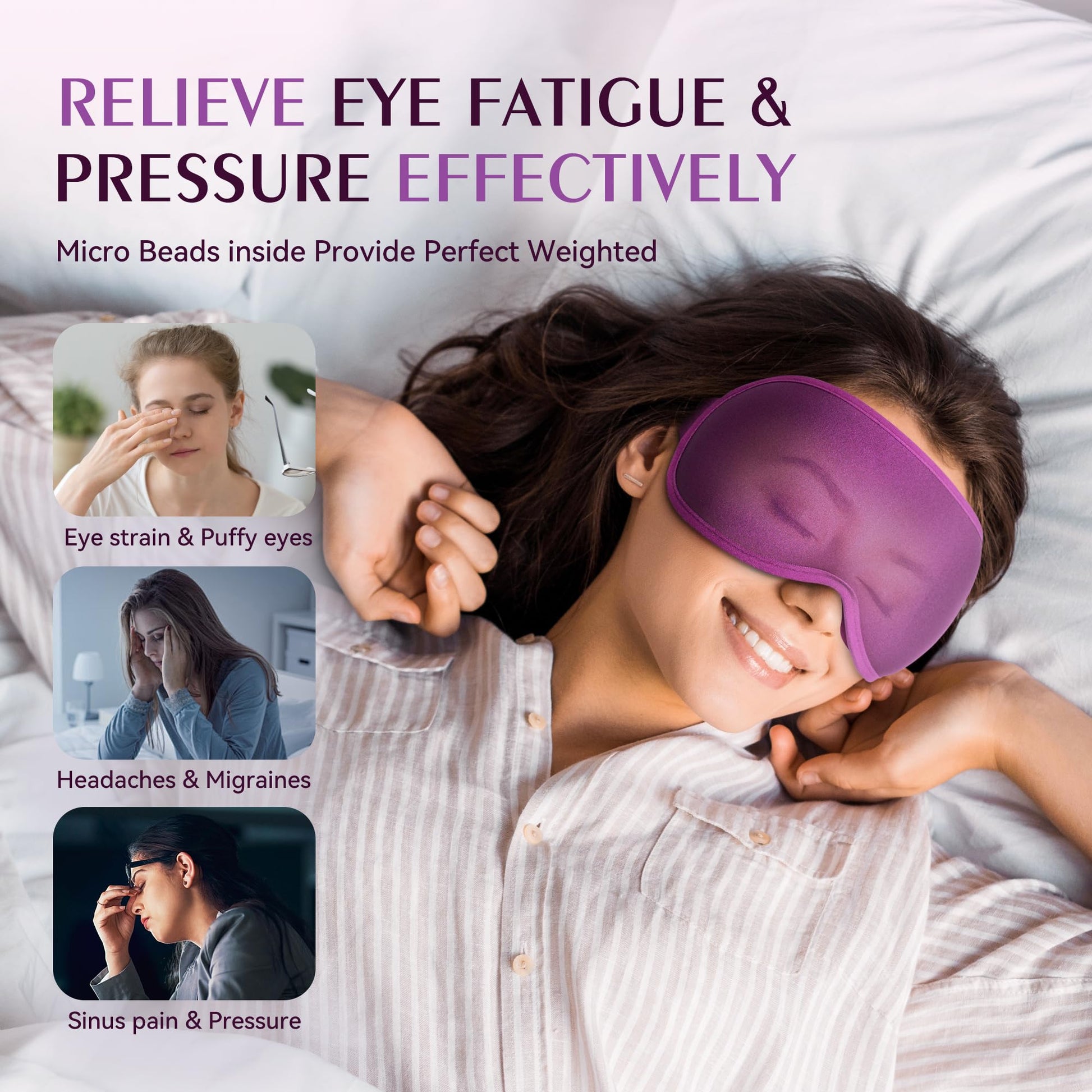 Weighted Eye Mask for Sleeping 2 Pack - 3D Contoured Sleep Masks for Women Men, Blackout Eye Mask for Travel, Meditation, Airplane, Memory Foam, Adjustable Strap Purple Pink