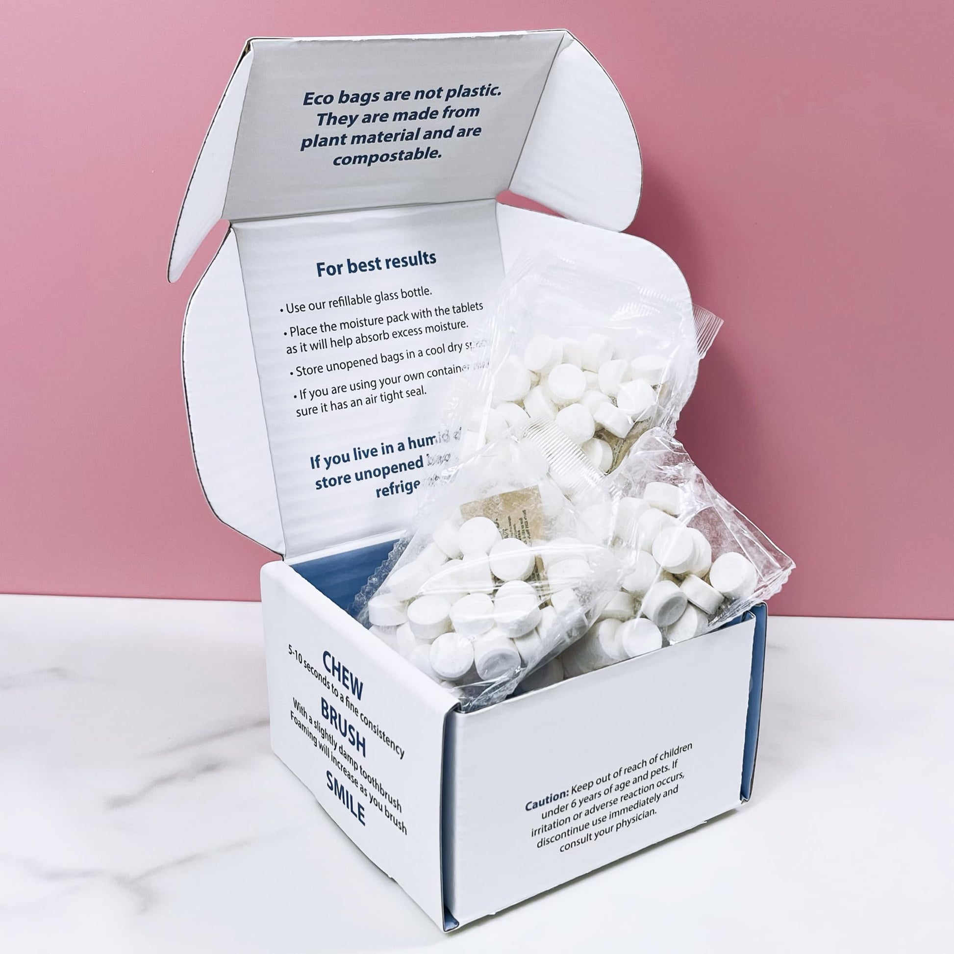 Toothpaste tablets that are rich in Xylitol. Perfect for every day use and travel.