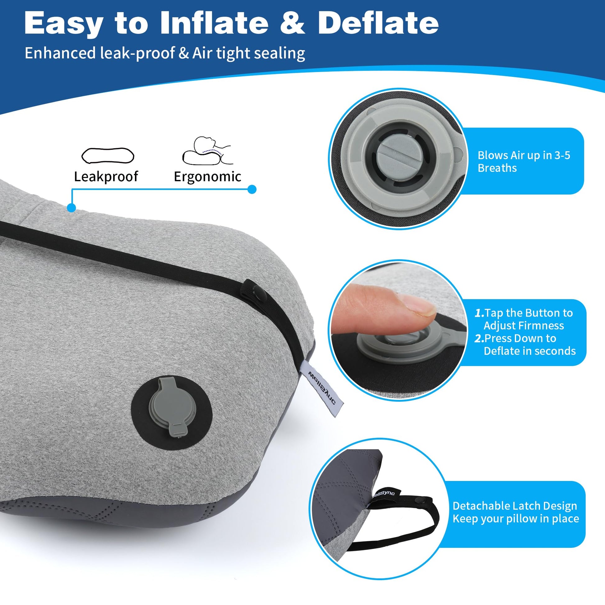 - Durable and Leak-Proof:Crafted with a thickened TPU bladder using high-frequency welding, our travel pillow for sleeping is seamless and airtight. This durable construction prevents air leaks, ensuring reliable comfort during all adventures, from beach trips to hikes. You can inflate and deflate it without concerns.