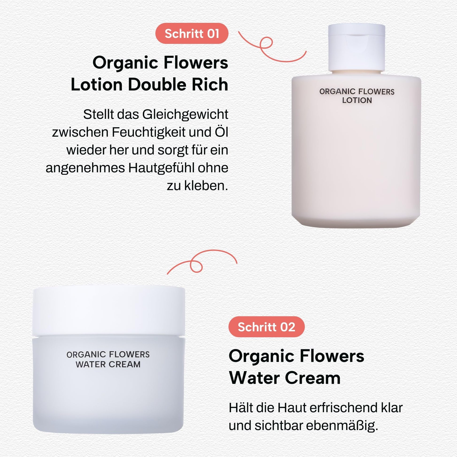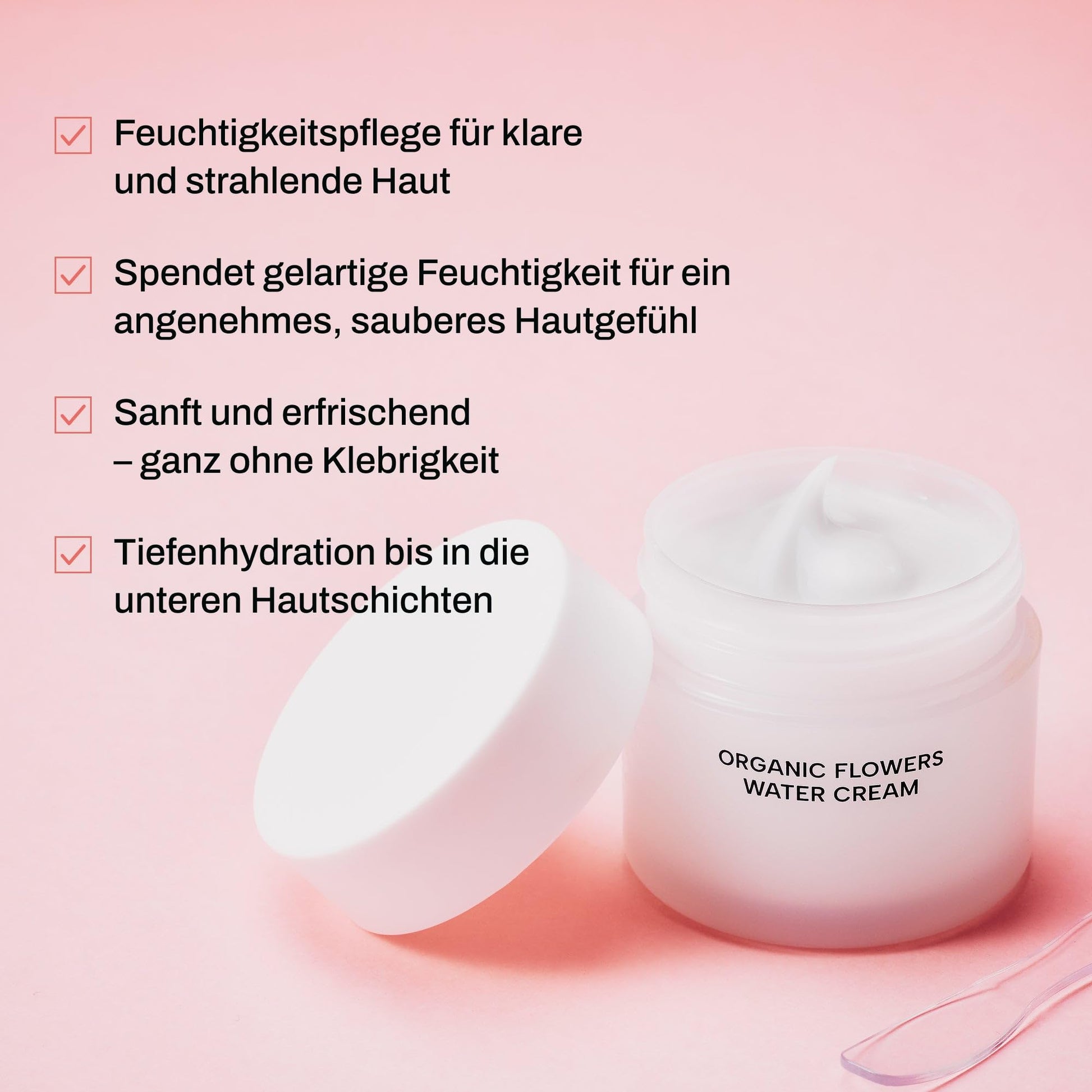 Whamisa Organic Flowers Water Cream, 95.2% Organic, Waterless Formula, Fermented Postbiotic for Deep Hydration & Soothing, Moisturizing (50ml)
