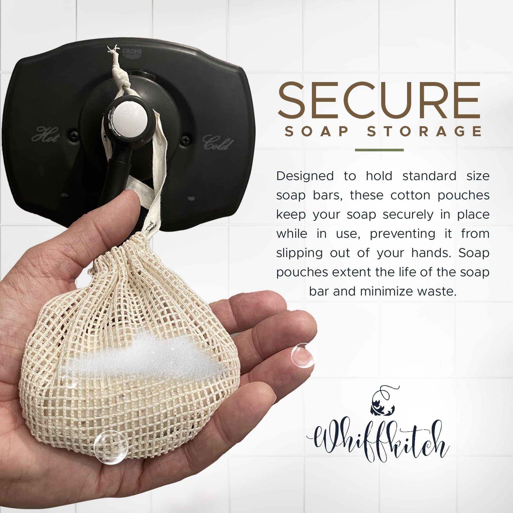 - GENTLE BODY SCRUBBER: Whiffkitch Soap Pouch 5-Pack features a mesh design that acts as a gentle body scrubber for your skin. Ideal for those who enjoy a refreshing scrub in the shower, the soft fabric helps create a rich lather while gently smoothing your skin. Ideal for individuals seeking a softer, smoother feel with every wash.