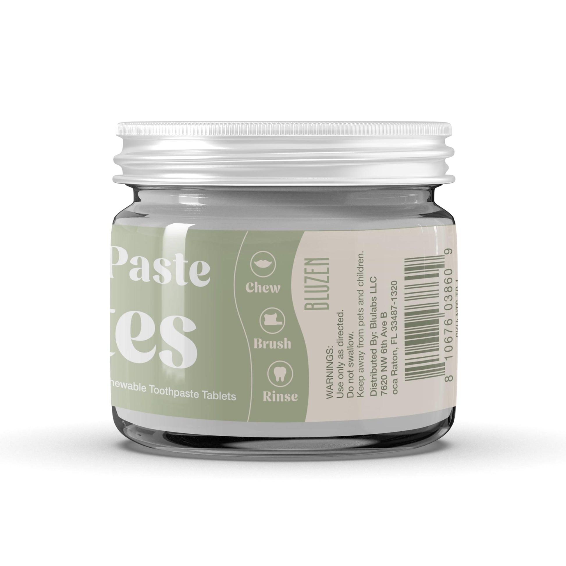 Details: Upgrade your oral care routine with Bluzen Toothpaste Tablets—the smarter, cleaner, and more sustainable way to brush your teeth! Powered by Nano Hydroxyapatite, our toothpaste bites help remineralize enamel, strengthen teeth, and reduce sensitivity—all without fluoride or unnecessary chemicals. Unlike traditional toothpaste, Bluzen Tablets are mess-free, travel-friendly, and completely plastic-free. Each bite-sized tab is designed for convenience: just chew, brush, and rinse! Whether you're at home, on a plane, or camping in the great outdoors, Bluzen makes oral hygiene effortless. Our naturally derived formula delivers a refreshing, minty clean without artificial flavors, foaming agents, or harsh abrasives. Plus, the minimalist, eco-conscious packaging helps reduce plastic waste, making Bluzen a sustainable choice for a healthier planet. Switch to Bluzen Toothpaste Tablets today—because a bright smile shouldn’t come at the cost of your health or the environment!