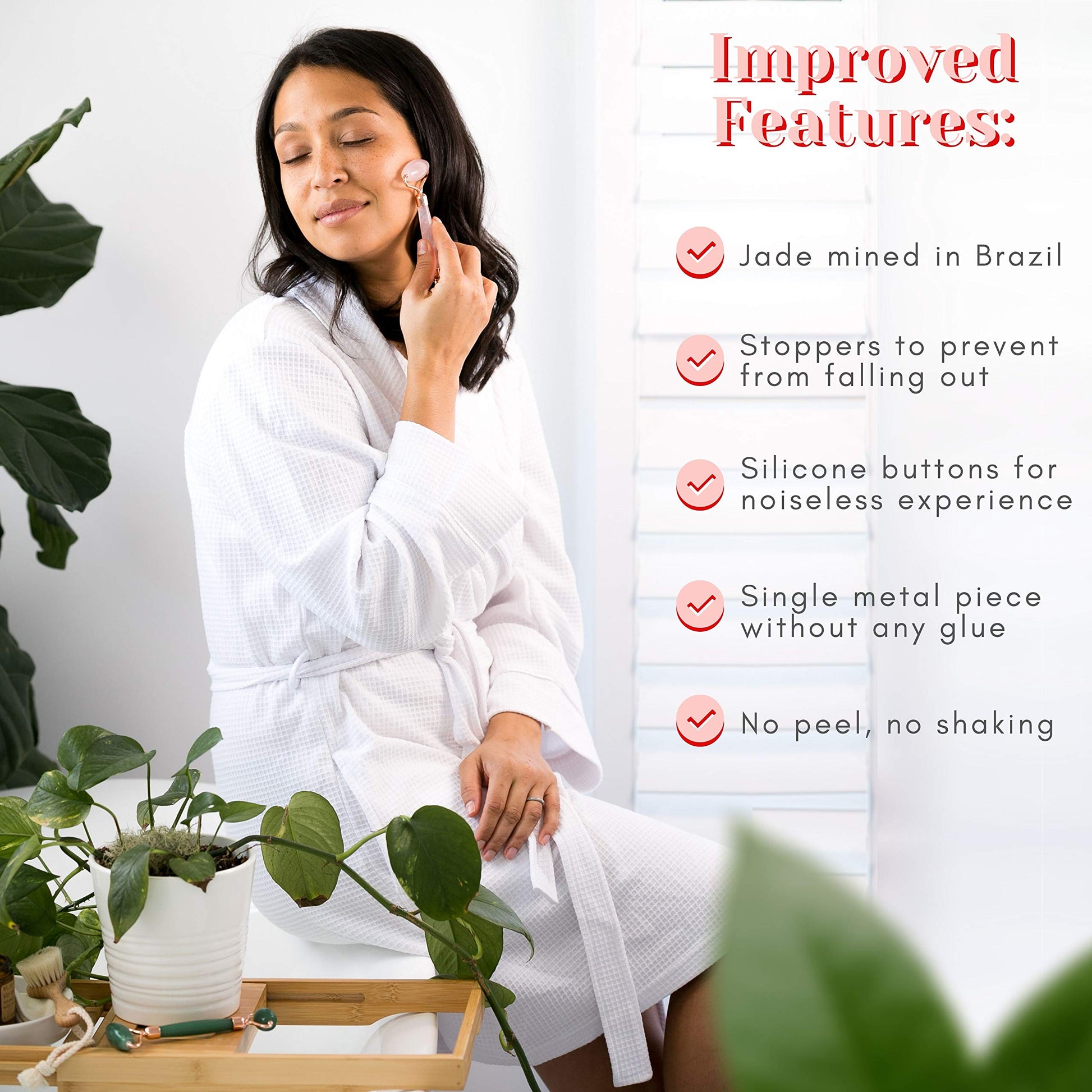- Enjoy a noise-free and smooth experience thanks to a silicone parts inside a rose quartz face roller. If you struggle with sleep, our skin roller and rose quartz gua sha set can help you to catch more of those valuable Z’s.
