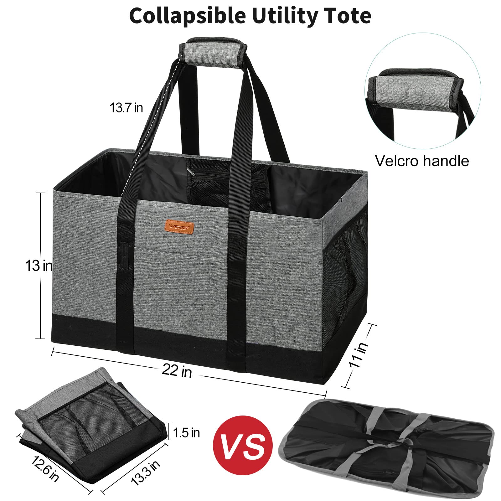 - Extra Large Capacity: The utility tote bag measures 22" L x 11" W x 13" D, providing enough space to carry a lot of daily necessities such as groceries, vegetables, fruits, shoes and clothes, etc; (Please note: Due to the foldable design, there is no metal frame at the top that can stand upright, but there are support plates on both sides)