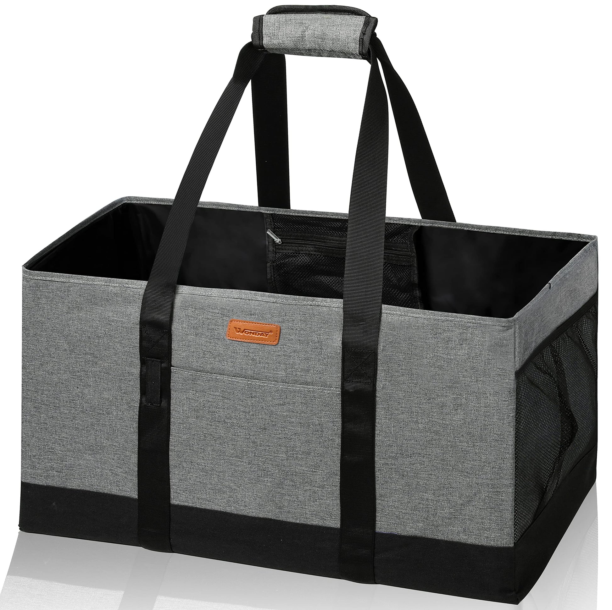 WONDAY Extra Large Foldable Grocery Tote Bag With Handles for Storage, Picnics, Beach, Pool, Laundry - Reusable Shopping Bag (Grey)