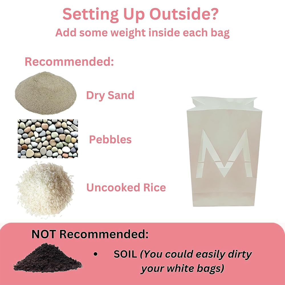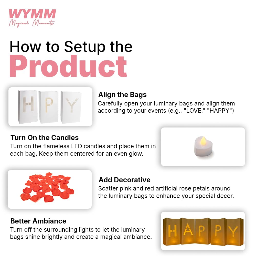 - CREATE UNFORGETTABLE MEMORIES - These luminary paper bags are easy to set up. You can do it yourself, it’s as easy as setting up a after marriage proposal decorations, mr and mrs light up sign, or any just married banner decorations