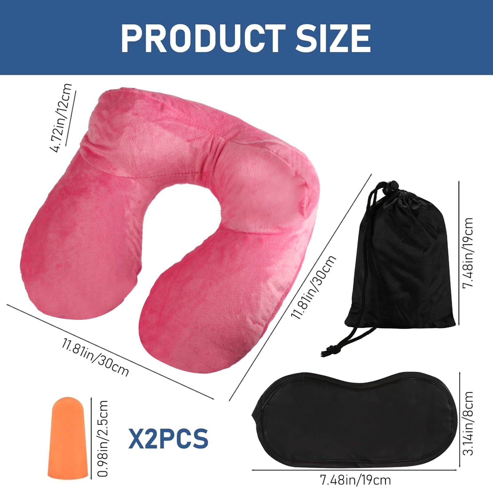 - Portable Design: The inflatable neck pillow for traveling is small in size, flexible and lightweight, foldable for storage, easy to carry when going out, and does not take up space. Equipped with a storage bag, earplugs and eye mask, you can rest easily and comfortably no matter where you are.