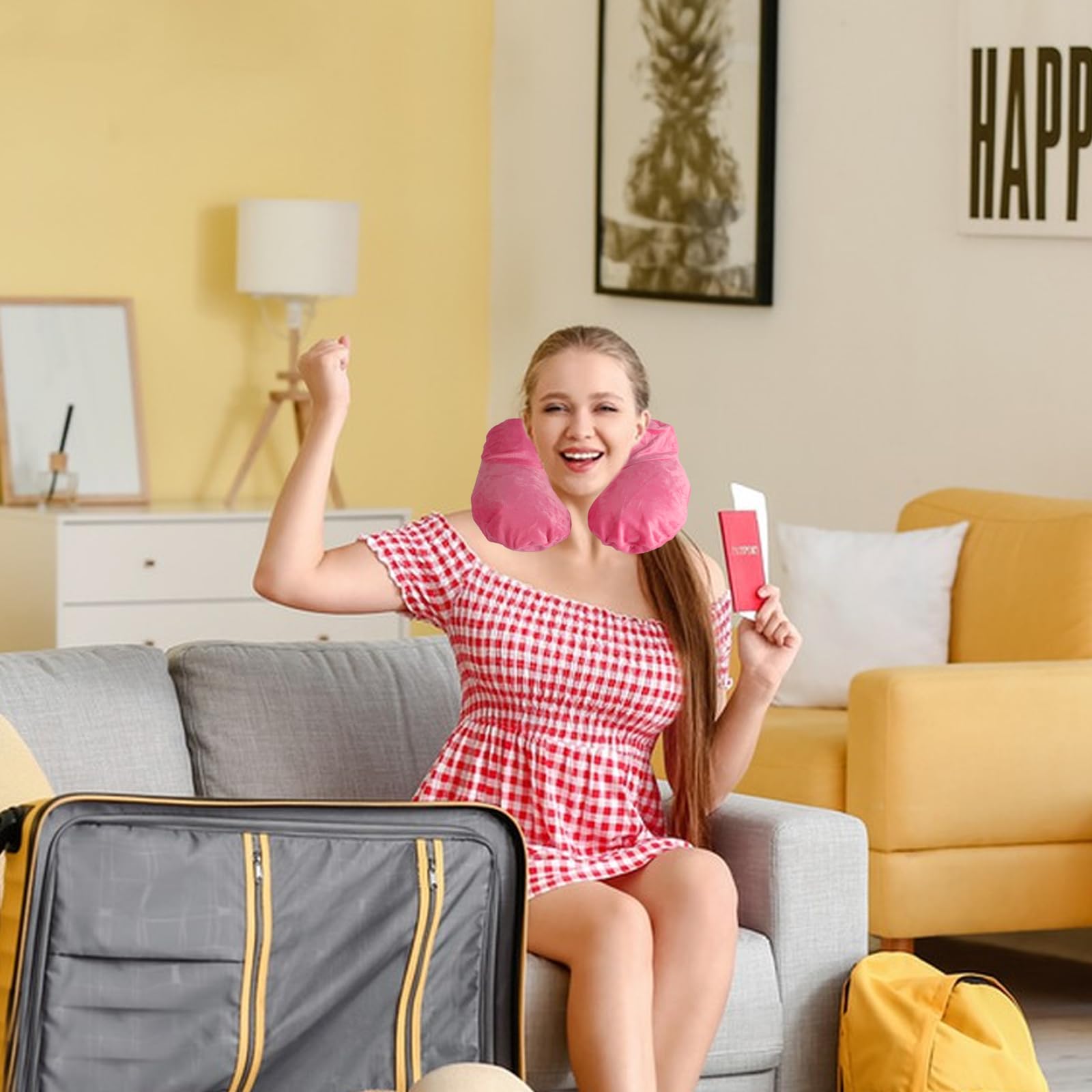 XhjzgcTech Air-Filled Travel Pillows for Sleeping Airplane Neck Support for Traveling Pillow Inflatable Travel Neck Pillows for Air-Filled Neck Pillow Airplane, with Eye Masks, Earplugs