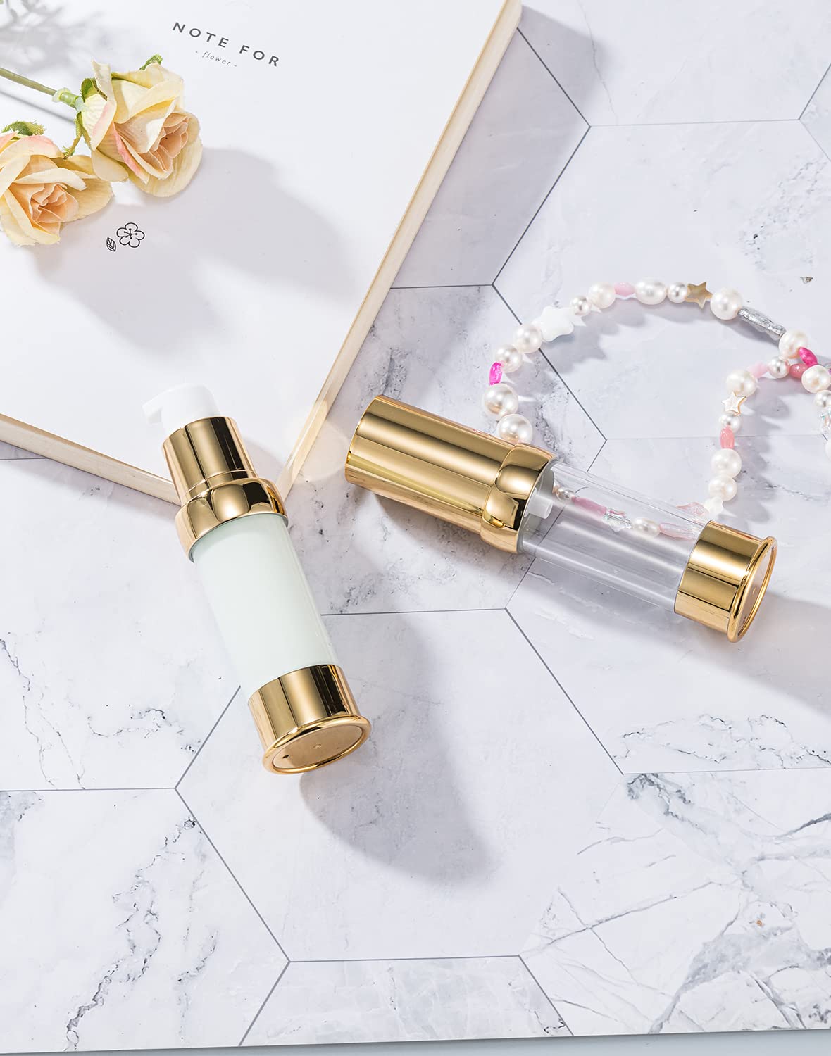 - Noble Appearance & High Quality: airless bottle is composed of exquisite gold and transparent colors. The pump bottle does not require a straw, travel size pump bottle. The environmentally friendly material can be reused and safely used. It can be used for lotion, hair oil, toner, liquid foundation, hand sanitizer, etc.