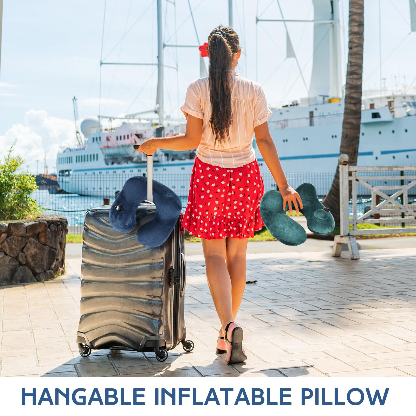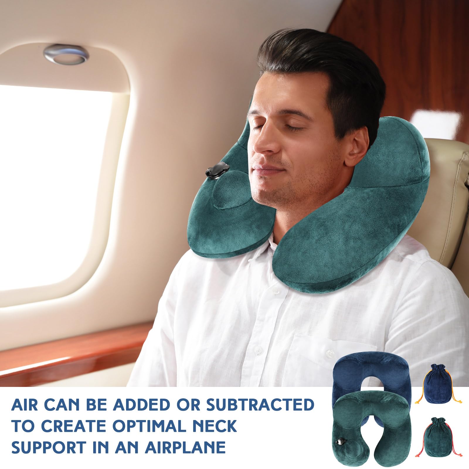 Xtinmee 2Pcs Self-Inflatable Pillow Soft Airplane Travel Pillow with Compact Bag for Long Flight Neck Cushion for Head Support Car Home Office 12.2x11.81x5.91in(Peacock Green, Blue)