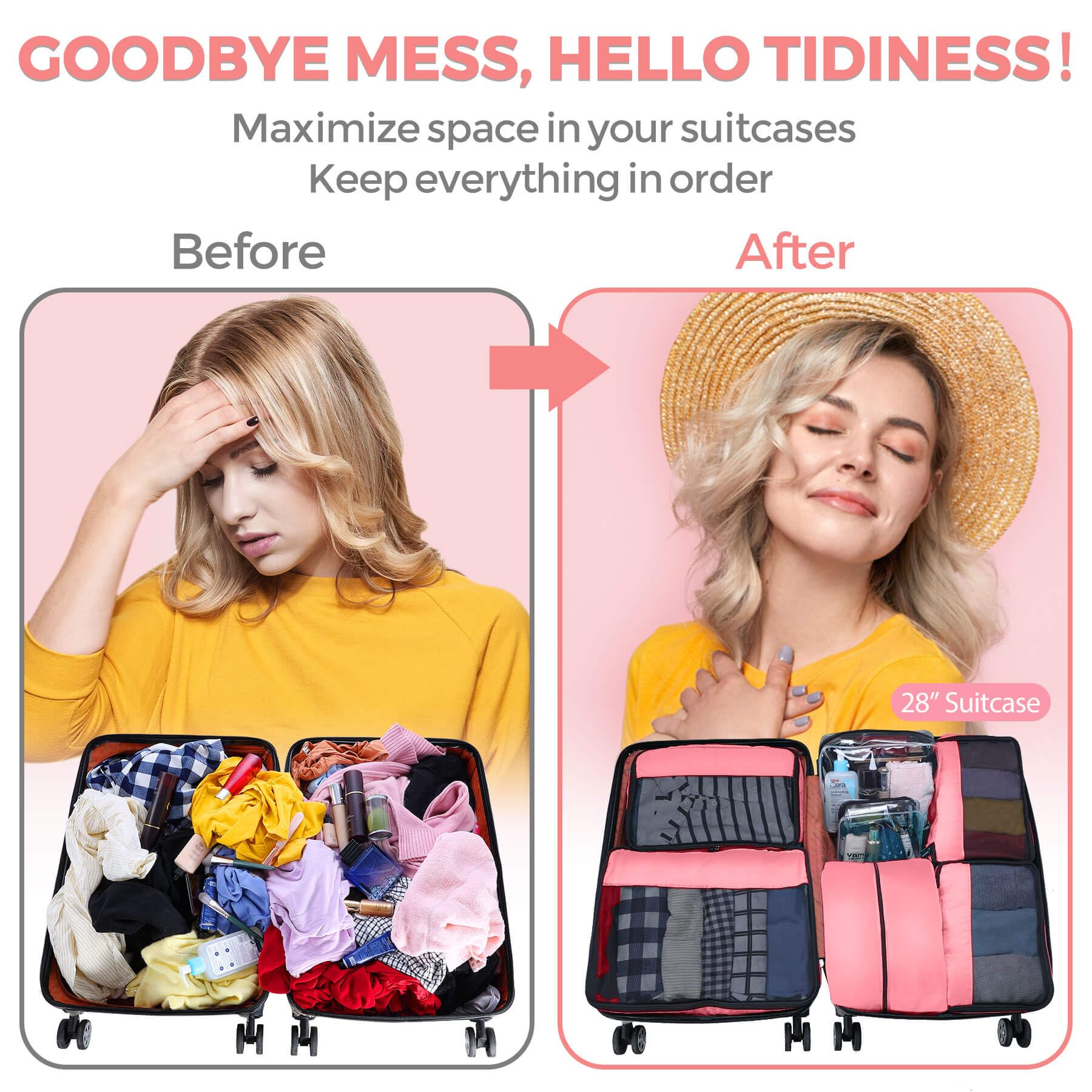 - Space and Time Savers: With a perfect depth of 4.3 inches, our packing bags for suitcases can hold a lot more than you would expect and fits cozy inside your luggage, providing more storage space. Moreover, our packing cubes have mesh window to easily view the contents and find anything quickly. A great helper to help you - Pack smarter, Find faster!