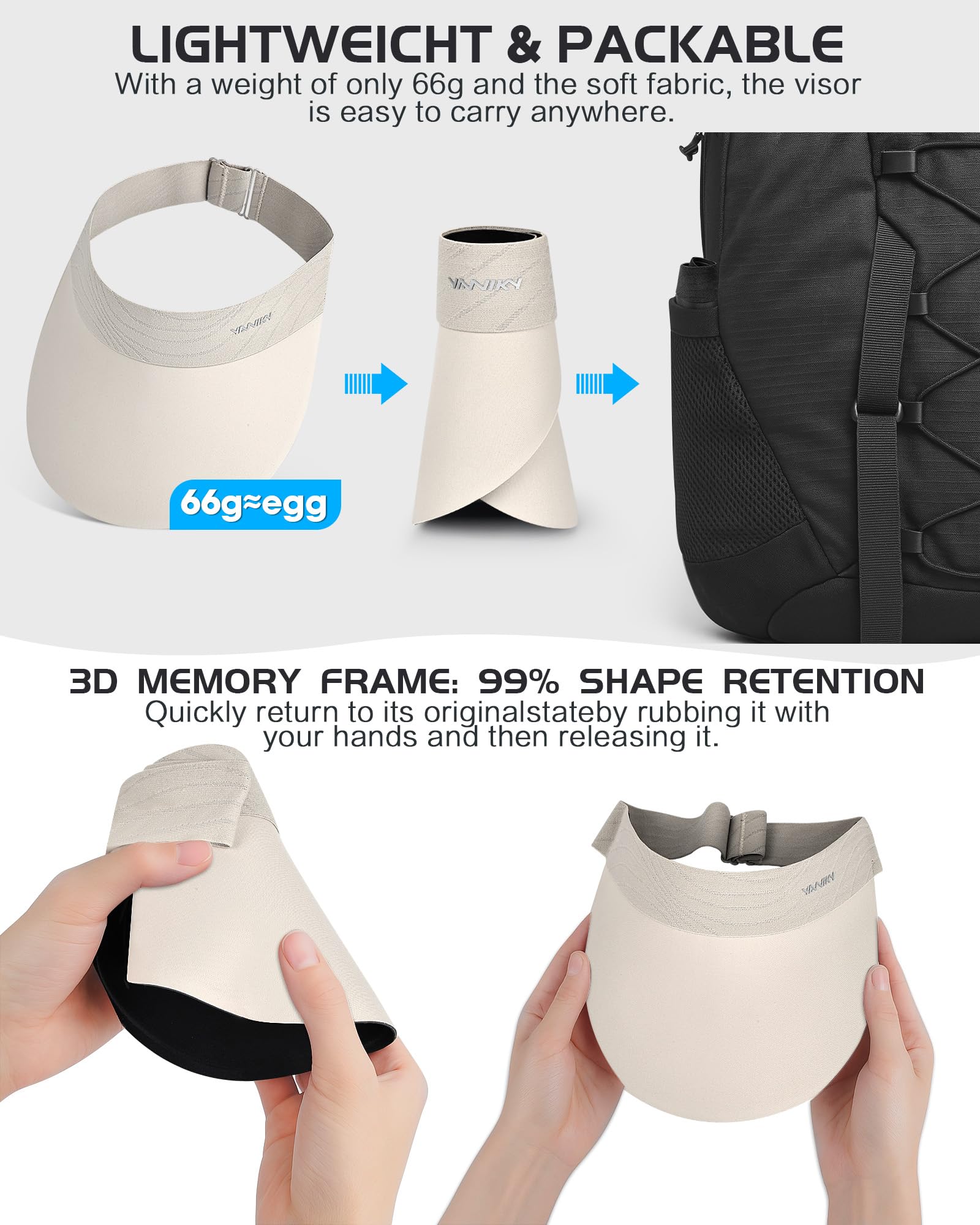 - 【UPF50+ & Cool-Touch Fabric】Crafted with 3D seamless memory foam and cool-touch fabric, YANIKY sun visor offers a premium, pressure-free fit. The fabric is infused with cooling technology, keeping you refreshed while blocking 99% of UV rays with its UPF 50+ triple-layer protection.