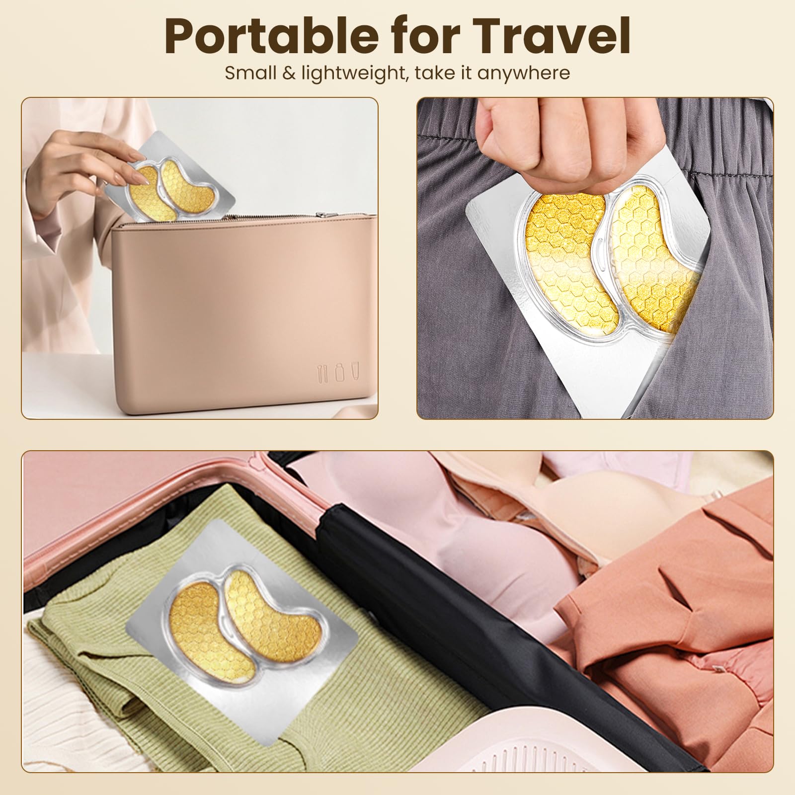 - SAFE EFFECTIVE - Infused with a blend of collagen as an anti-aging component, 24K gold hyaluronic acids, and a variety of natural plant extracts, which makes eye skin recharge hydration, achieve eliminating eye puffiness, prevent the formation of wrinkles. The eye mask can effectively decompose the melanin deposits, boost the metabolism and improve the dullness around the eyes skin.