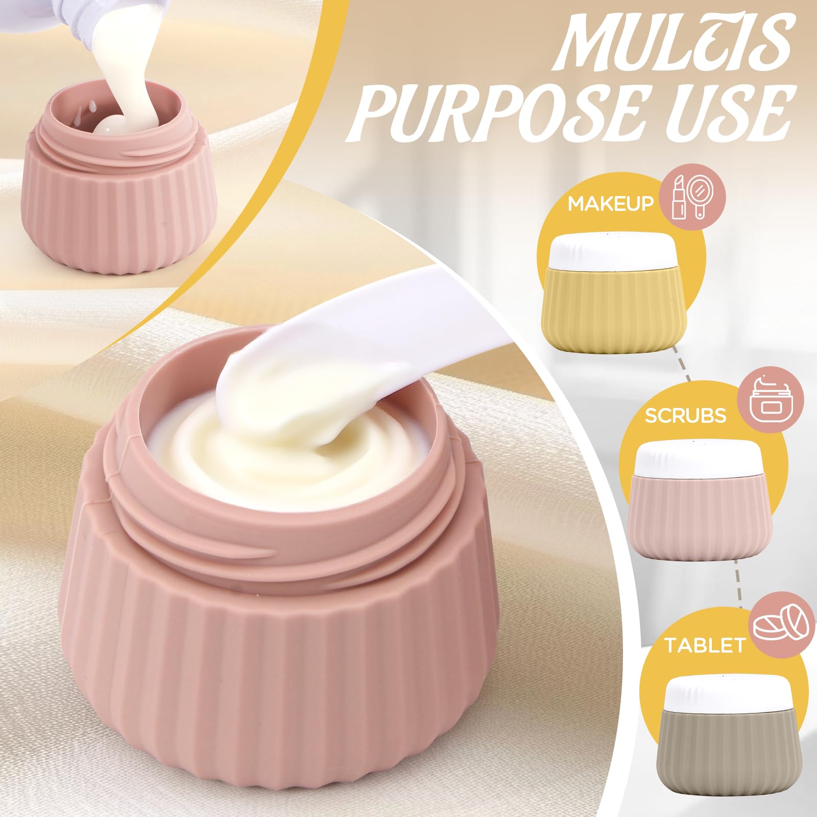 - 【MULTI-PURPOSE USE】 6-pack Travel Bottles for Toiletries have multiple uses. Travel Size Toiletries Containers Set can store Shampoo, shower gel, creams, coconut oil, lotions, make-up, scrubs, ointments, accessories, beads, small jewelry, and more. Works great for liquid and gel-type items