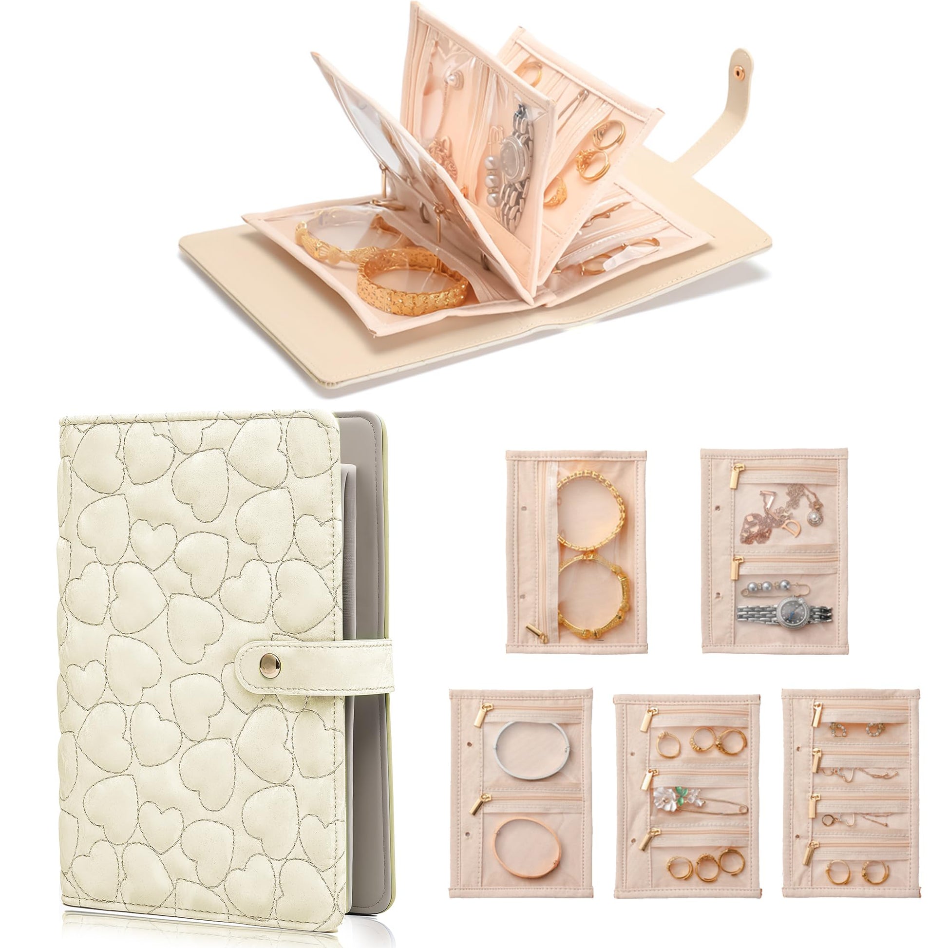- Premium Jewelry Travel Pouch:Crafted from premium PU leather, the travel jewelry case shields items from scratches and impact. Each velvet-lined page features secure zippers to prevent spills or damage—perfect for delicate everyday jewelry.
