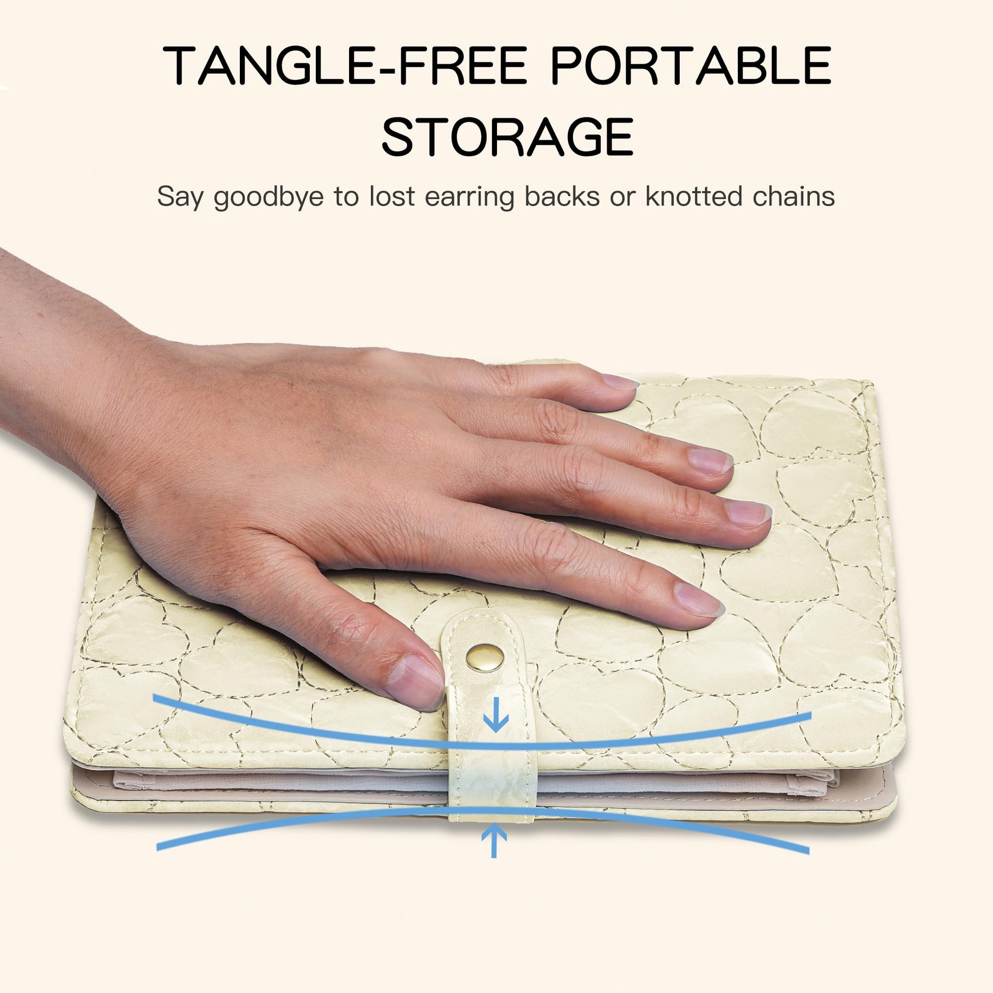 - Travel Jewelry Case: Compact & tangle-free storage,Measuring just 8.4" x 6", our jewelry travel case fits effortlessly into handbags, backpacks, or carry-ons. Its sleek book-style design prevents necklaces, earrings, and bracelets from tangling during transit. Ideal for business trips or weekend getaways, this travel jewelry organizer keeps accessories secure and neatly arranged.