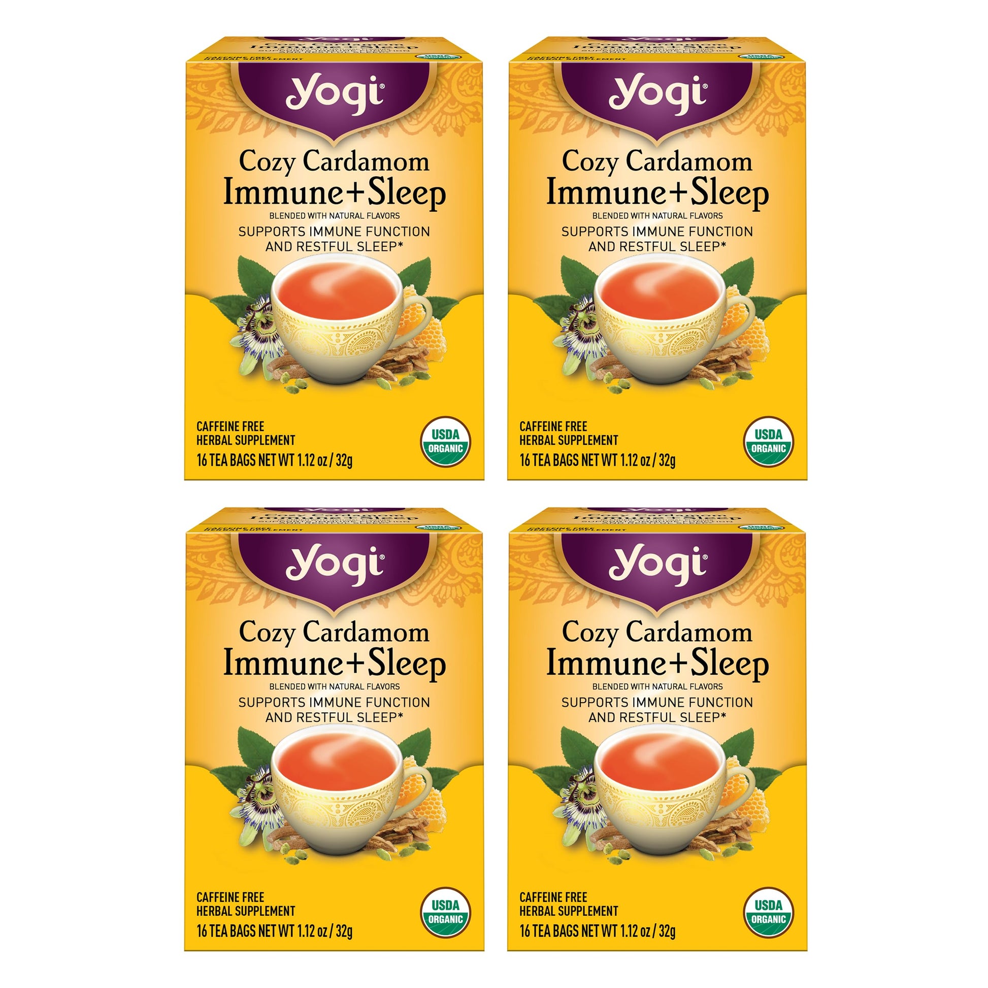 - Organic Immunity Tea: Yogi Cozy Cardamom Immune & Sleep combines warm Cardamom and lightly sweet Honey, for a soothing herbal tea blend