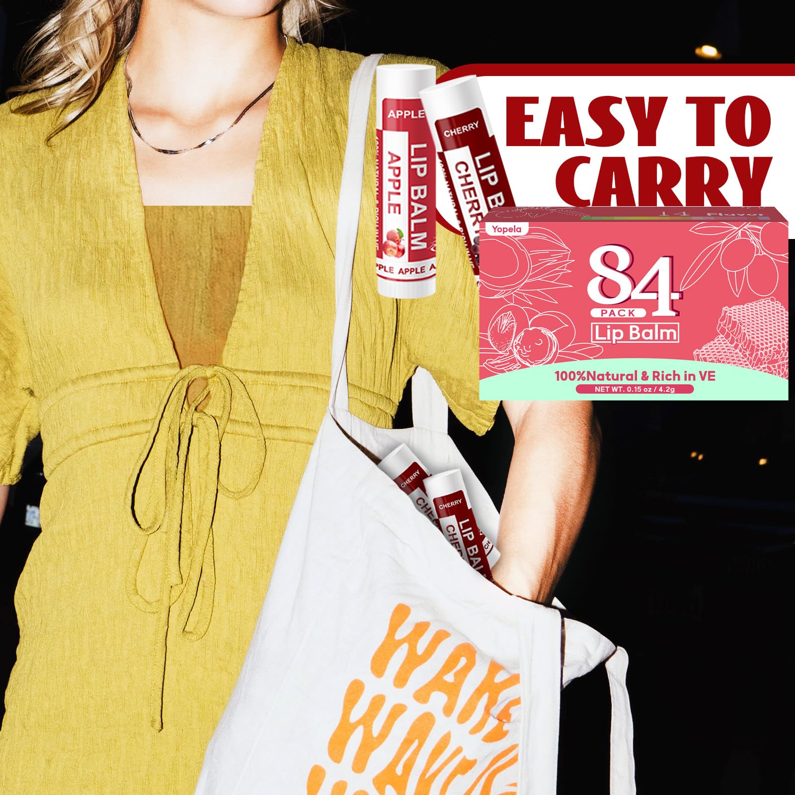 Yopela 84 Pack Lip Balm Bulk Variety Set,14 Flavors Hydrating & Natural Lip Balms, Moisturizing Dry Cracked Lips, Chap Stick Gift Set for Women, Men, Kids