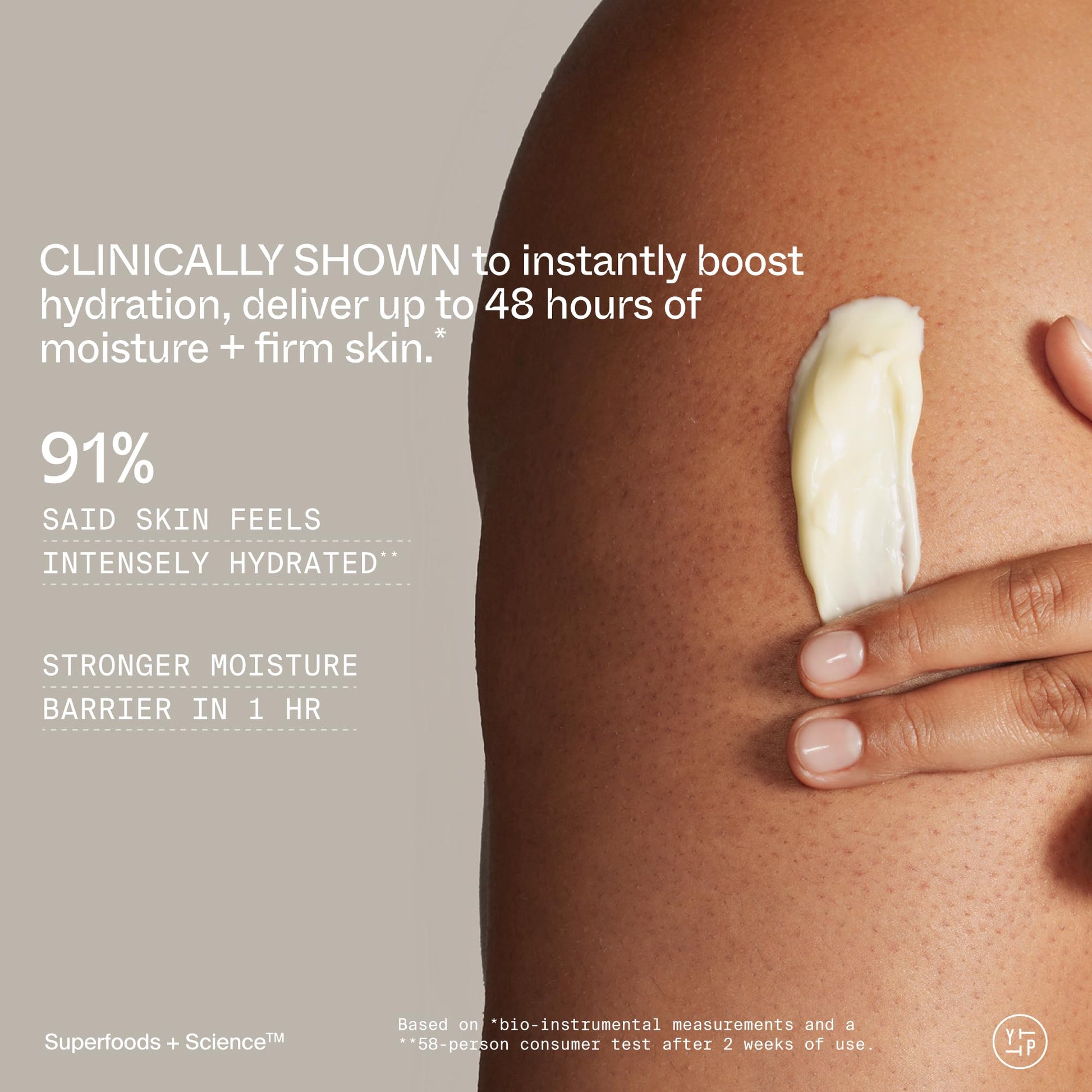 - BRIGHTENING + FIRMING BODY BUTTER - This luxurious hydrating body butter is formulated with skin-loving ingredients that visibly brighten and firm while supporting a strong moisture barrier. Clinically shown to instantly boost hydration, deliver up to 48 hours of moisture and firm skin.