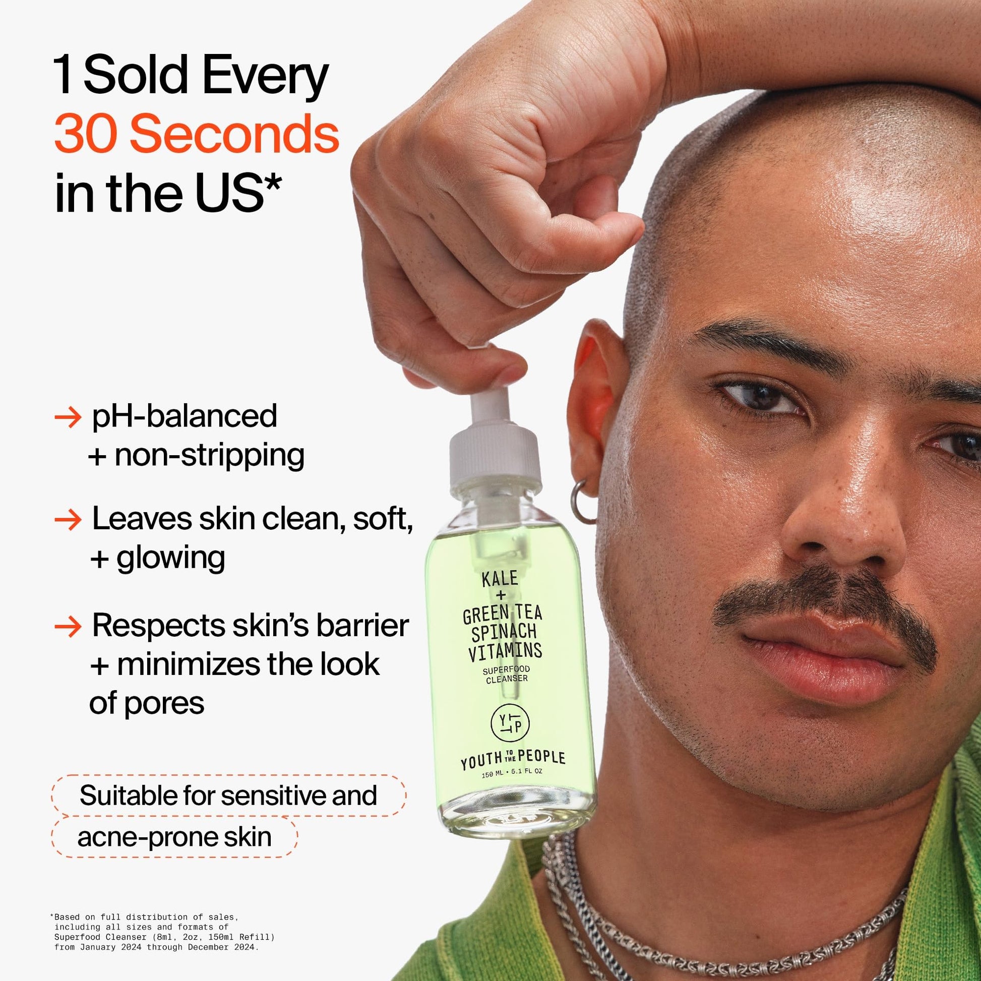 - SUPERFOOD FACIAL CLEANSER (2 fl oz) - The powerful, but gentle daily face wash is formulated with superfood antioxidants from kale, spinach, and green tea - to give your skin the ultimate cleanse. It works effectively to prevent buildup in pores, remove makeup, and balance pH without drying or stripping. This is the green juice cleanse for your face.