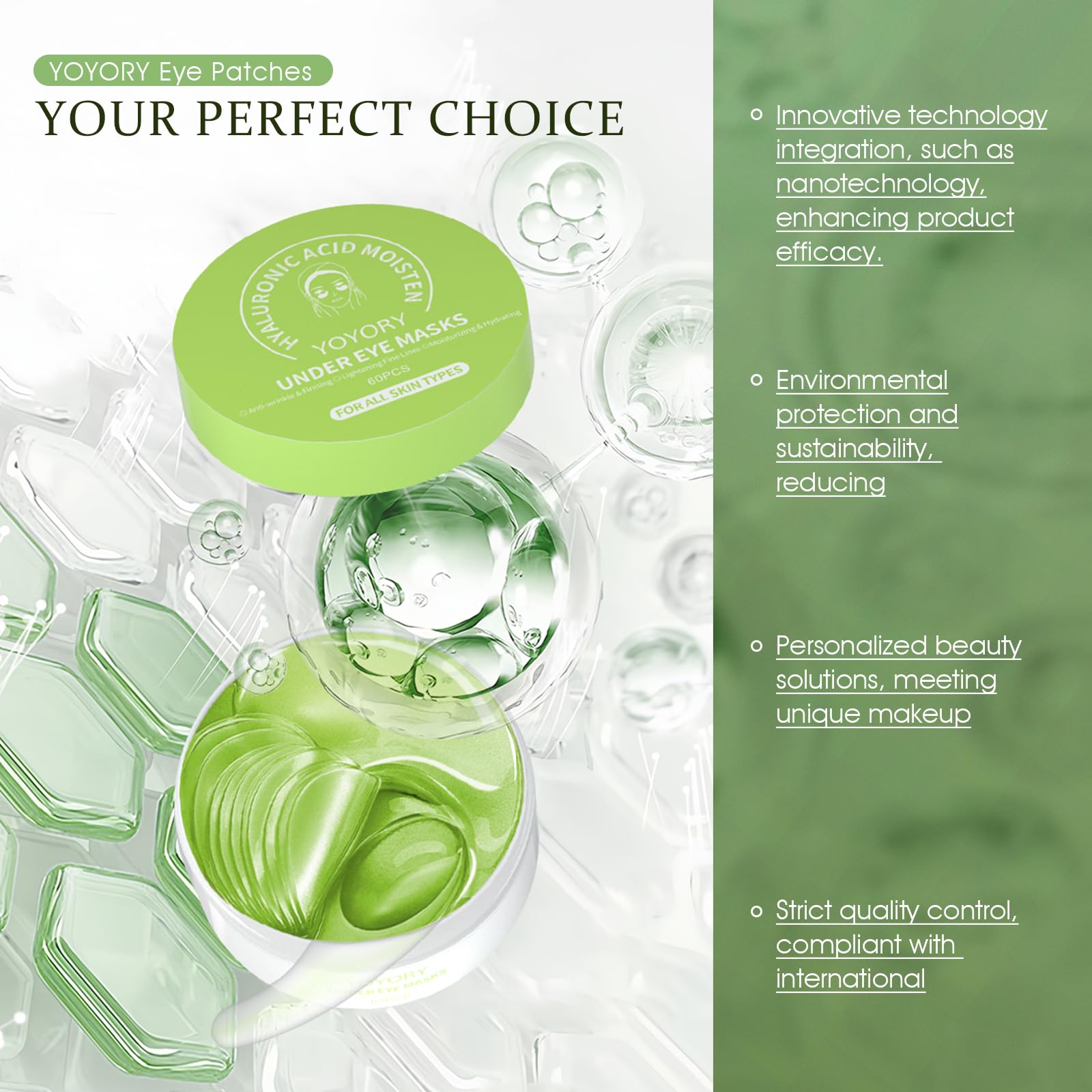 YOYORY Under Eye Patches Masks - for Eye Bags with Collagen and Hyaluronic Acid, Dark Circles,and Fine Lines, Fade Wrinkles Treatment for Women and Men - 60 Pcs Green